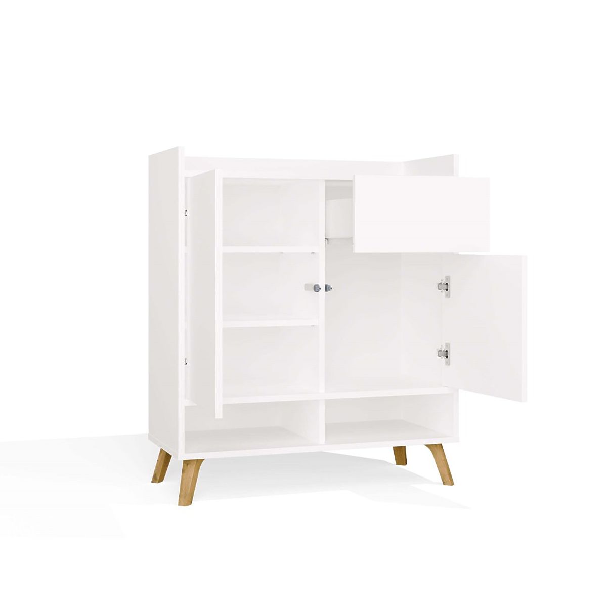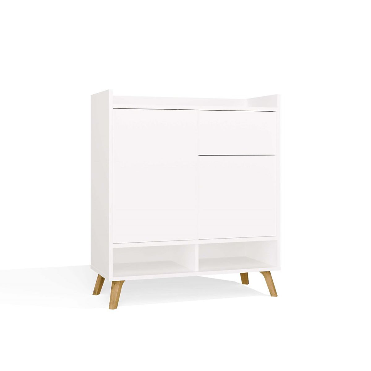 Preprosta oblika, fronte brez ročajev in visoke noge v skandinavskem slogu dajejo komodi lahkotnost in moderen značaj.