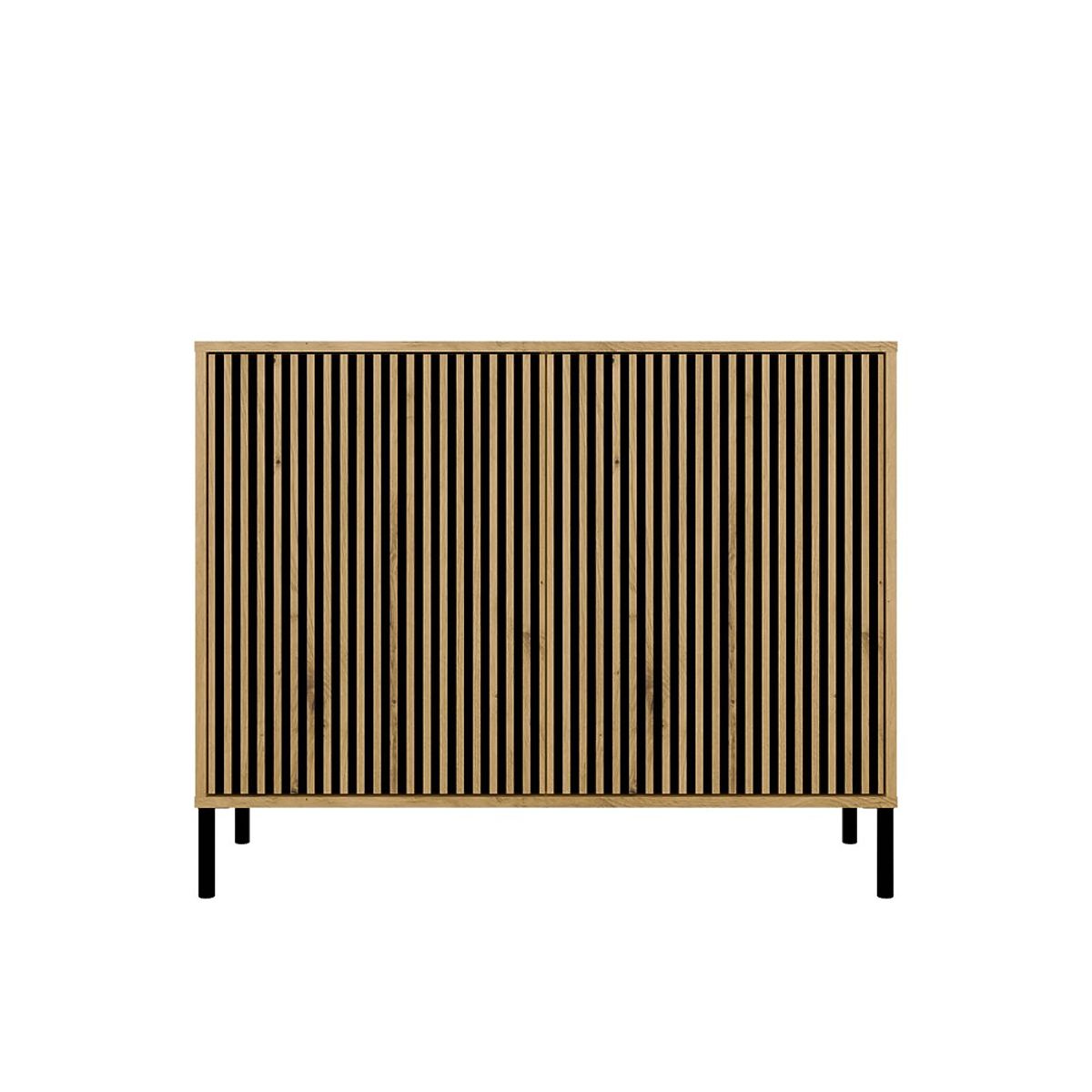 BARVA: HRAST ARTISANELEGANCA IN PRAKTIČNOST V ENEMKomoda KAMARO 2D SLIM združuje estetiko in funkcionalnost, ki se odlično prilega dnevni sobi, gostinski sobi, spalnici ali pisarni. Zaradi rebrastega sprednjega panela vrat (ki spominja na lamele) pohištvo pridobi sodoben in izviren videz, ki se popolnoma prilega sodobnim notranjostim.