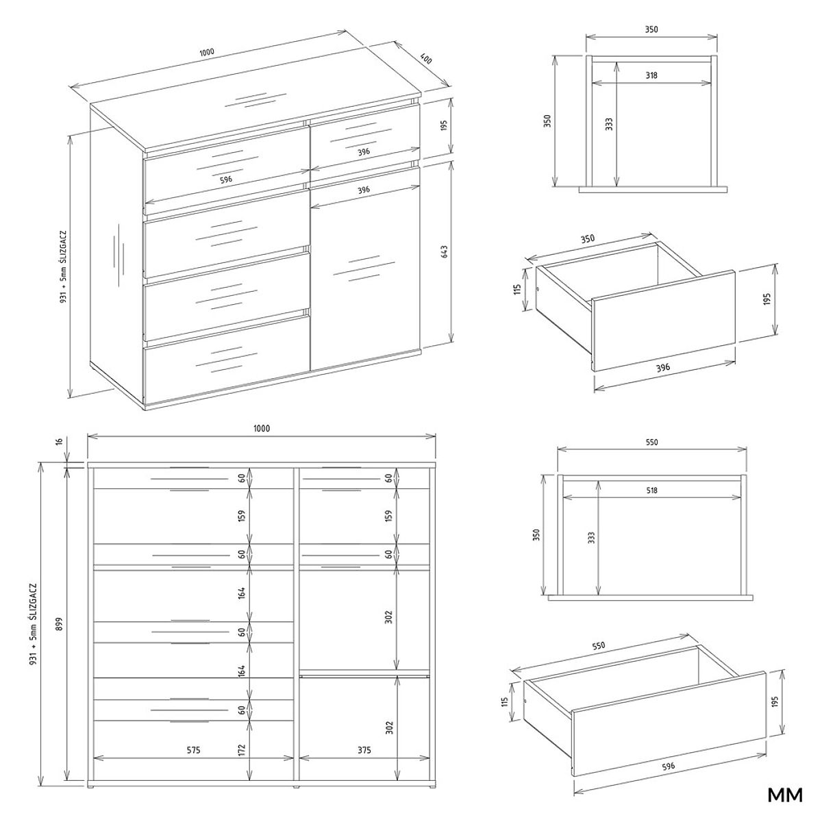 Premišljena razporeditev enih vrat in petih prostorskih predalov omogoča udobno shranjevanje oblačil, dokumentov, dodatkov ali drugih vsakodnevnih potrebščin, kar pomaga ohranjati red v prostoru.