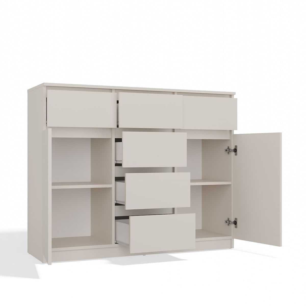 - Prostornost in funkcionalnost: Komoda je opremljena z 2 vrati in 6 prostornimi predali, ki pomagajo pri organizaciji vašega prostora. Idealna za spalnico, dnevno sobo, otroško sobo ali predsobo – povsod, kjer potrebujete dodatni prostor za shranjevanje.