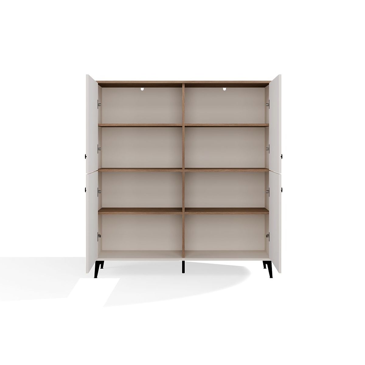 Model je opremljen s štirimi sprednjimi stranmi s tihim zapiranjem, za katerimi se skriva kar osem praktičnih polic – idealnih za shranjevanje knjig, dokumentov, tekstila ali vsakodnevnih dodatkov.