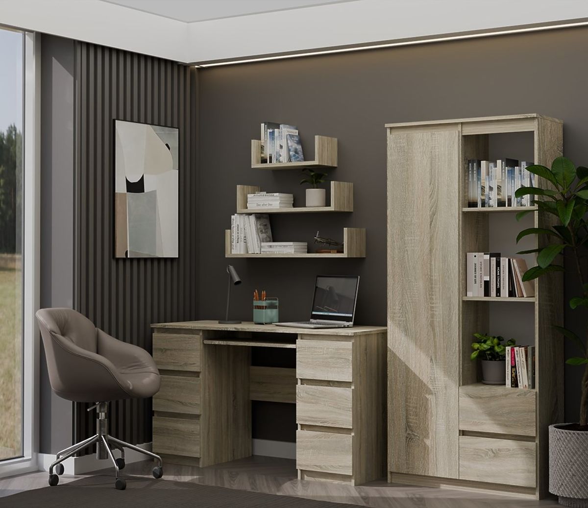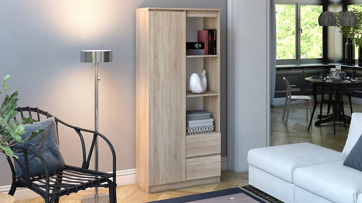 Regal RS-80 ponuja 7 polic in 2 predala za dnevno sobo ali pisarno. .. več