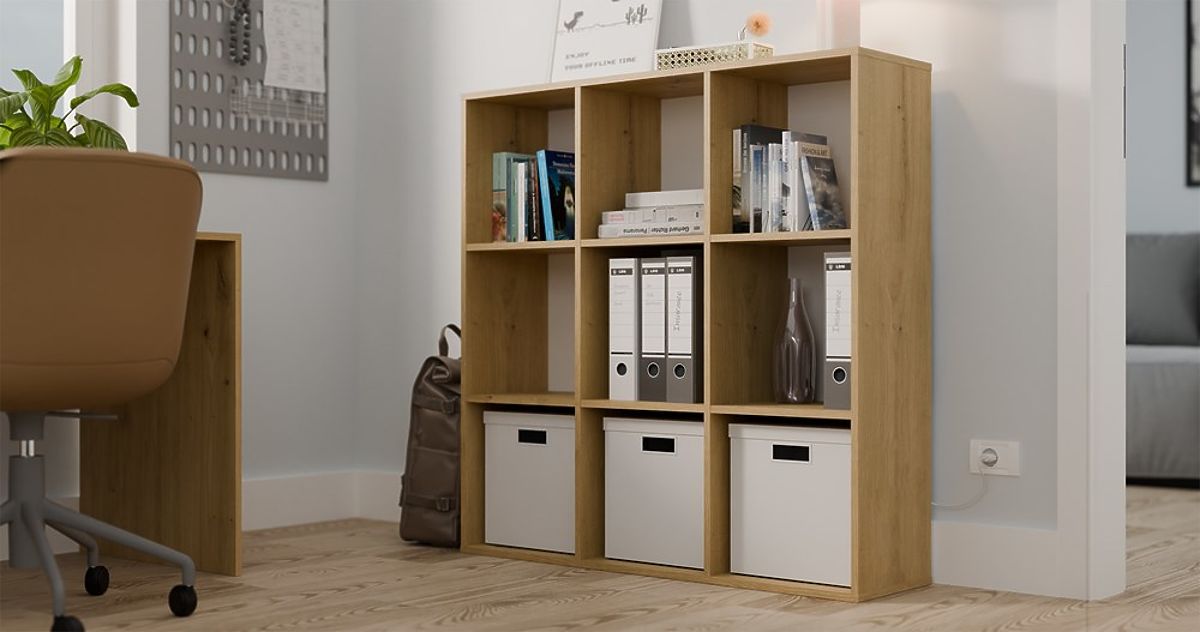 Regal MALAX 3x3 H s trdnim zadnjim panelom za knjige in igrače. .. več