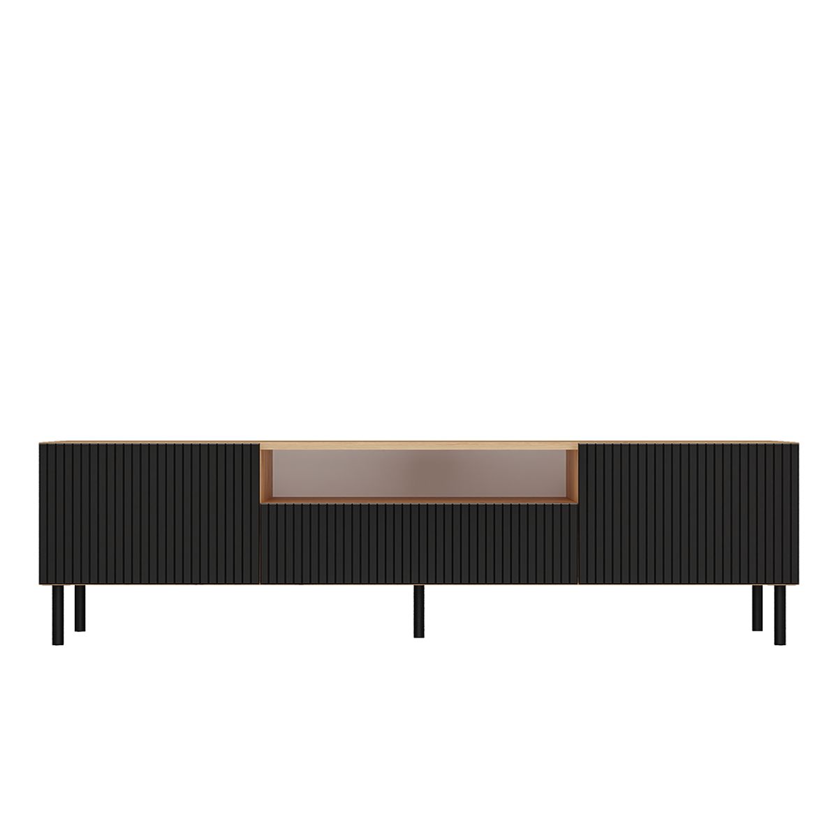 - Odprta polica omogoča udobno namestitev TV naprav, odprtina na zadnji strani pa olajša diskretno montažo kablov