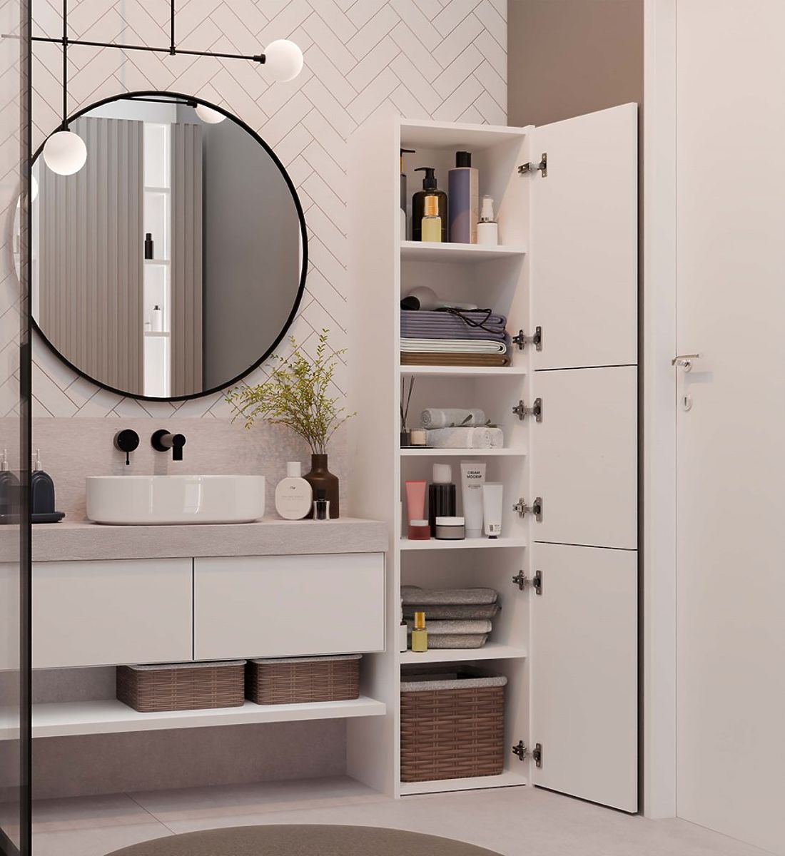 V vsaki kopalnici se najdejo stvari, ki potrebujejo svoj prostor. Zahvaljujoč praktičnim stebrom boste učinkovito obvladali nered, ne da bi zavzeli preveč prostora.