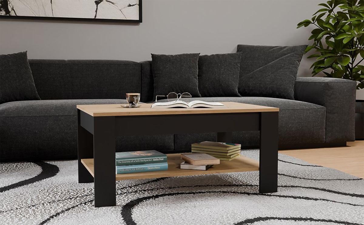 Moderna konferenčna miza OHIO je popoln dodatek za dnevno sobo, dnevni prostor ali kotiček za sprostitev. Kombinacija dekorja Hrast Artisan z mat črno daje pohištvu moderen in eleganten značaj. Minimalistična oblika in funkcionalna spodnja polica zagotavljata, da je pohištvo ne le estetsko, ampak tudi zelo praktično za vsakodnevno uporabo.