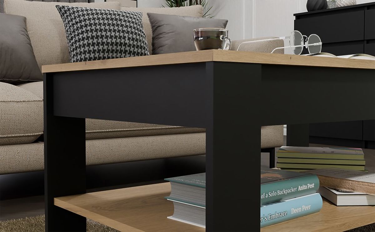 Zaradi premišljene zasnove miza ponuja udoben prostor za odlaganje pijače, knjige ali prenosnika, spodnja polica pa je idealna za shranjevanje revij, daljincev ali drugih drobnarij.