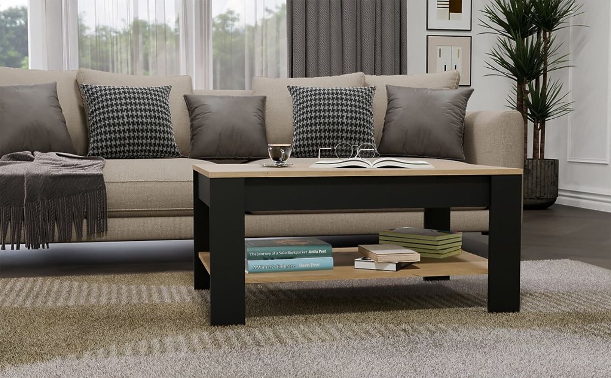 Konferenčna miza OHIO HRAST ARTISAN ČRNA Miza Polica Za Dnevno Sobo 93x58x43,5 Cm