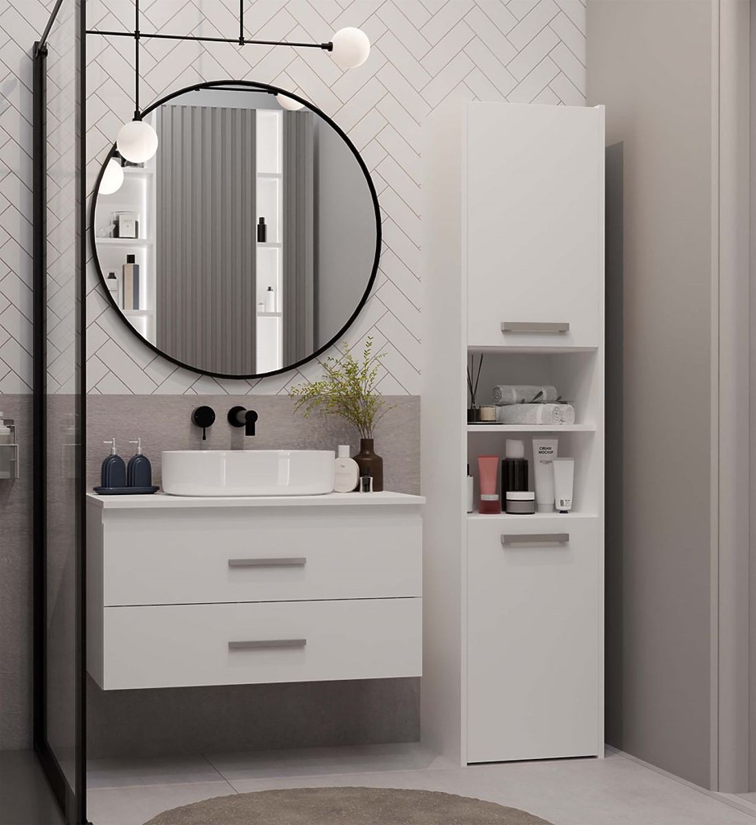 NEL 80 je praktična kopalniška omarica, ki se odlično prilega v sodobne interierje, tako srednje velike kot manjše.