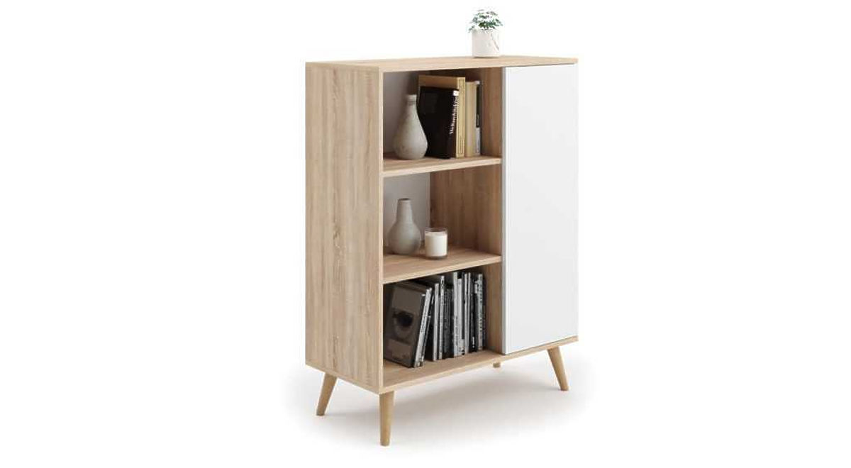 Omara FONDI je izjemno praktičen kos pohištva, ki združuje preprostost z estetiko, navdihnjeno s skandinavskim stilom. Zaradi elegantnega dizajna se ta omara popolnoma prilega modernim interierjem, katerim dodaja lahkotnost in svežino. Njene prostorne police omogočajo razstavljanje priljubljenih dekoracij, knjig ali fotografij, kar omogoča personalizacijo interierja in dodajanje edinstvenega značaja. Praktični shranjevalni prostori pomagajo ohranjati red in ponujajo prostor za shranjevanje različnih predmetov.