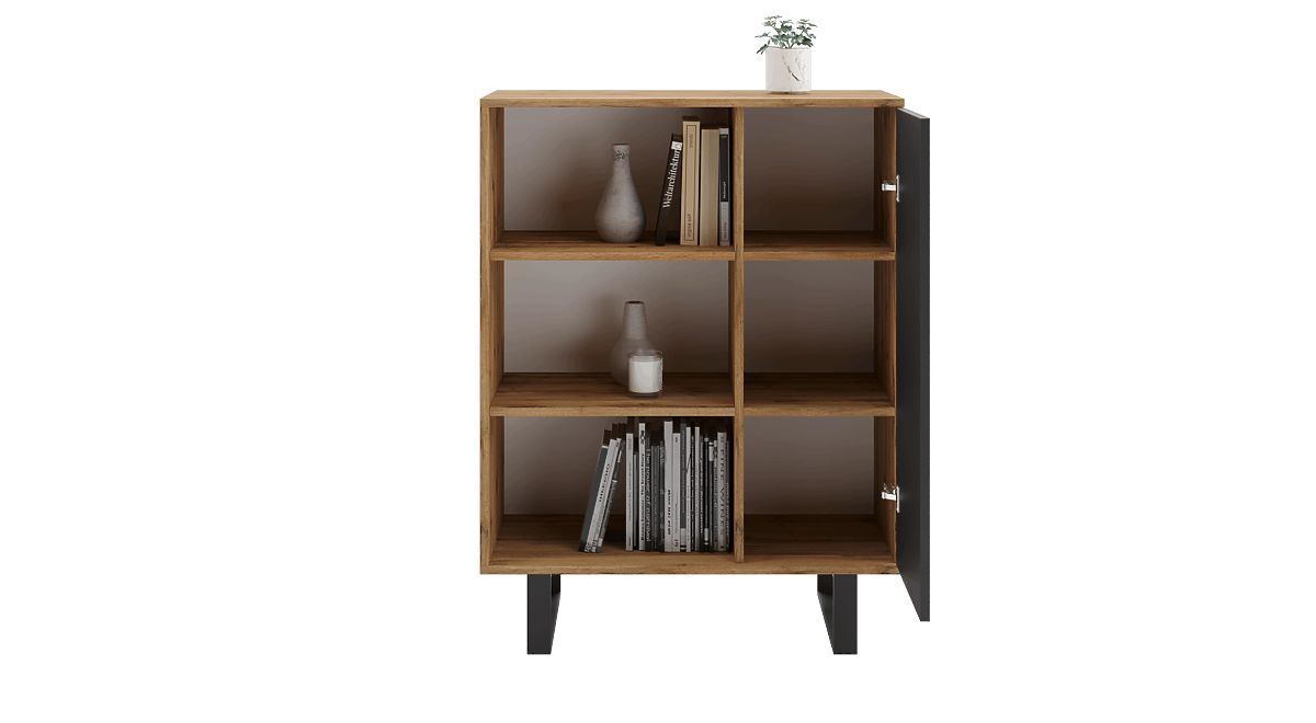 Omara FONDI je izjemno funkcionalno pohištvo za vašo dnevno sobo, ki združuje preprostost z privlačnim videzom, navdihnjenim z loft stilom. Zaradi minimalističnih oblik in surovih materialov, kot so kovinski elementi in les, omara v prostor prinaša edinstveno atmosfero in značaj. Je idealna rešitev za tiste, ki cenijo praktičnost in sodoben dizajn v enem. Omara FONDI je tako funkcionalna kot estetska, ponuja prostor za shranjevanje in možnost razstavljanja priljubljenih dekoracij.