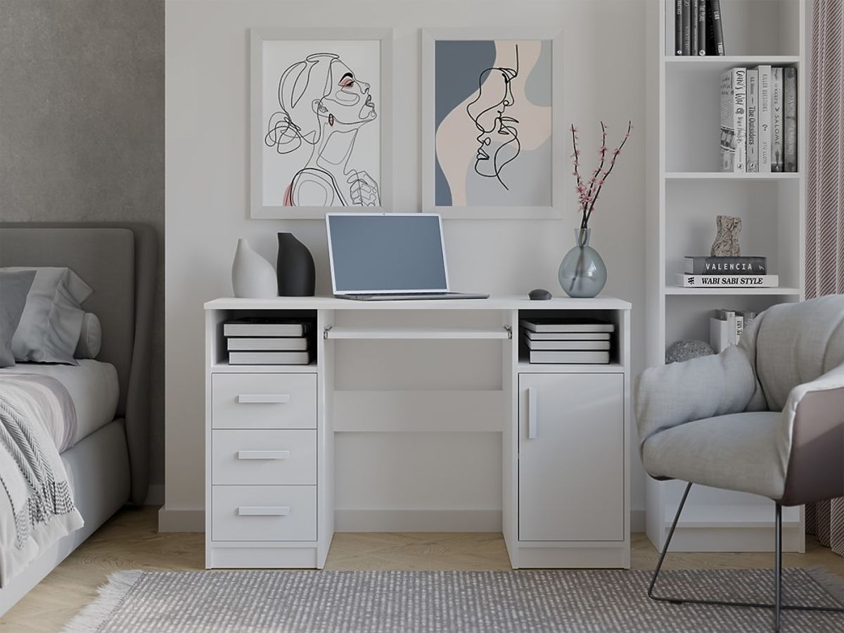 PISALNA MIZA DELTA BELA 120 cm 3 Predali Omara Polica Za Pisarno Soba Za Prenosnik