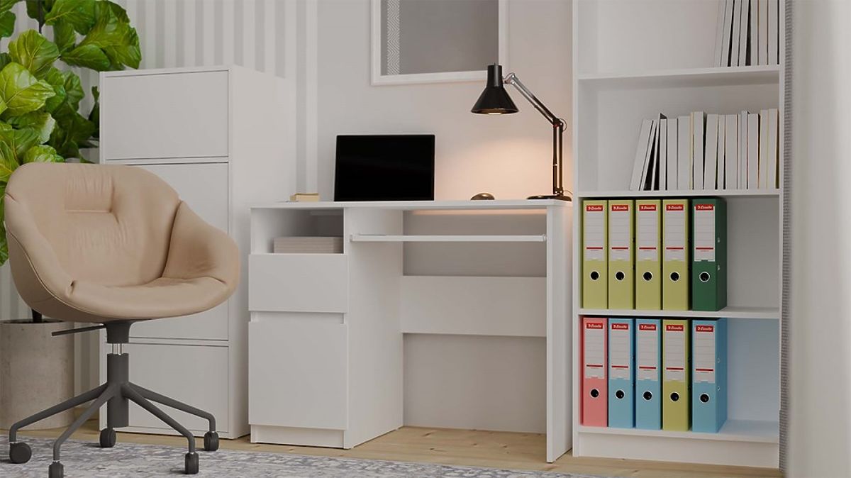 Pisalna miza Porto Levi z belo mat barvo in praktično zasnovo. .. več