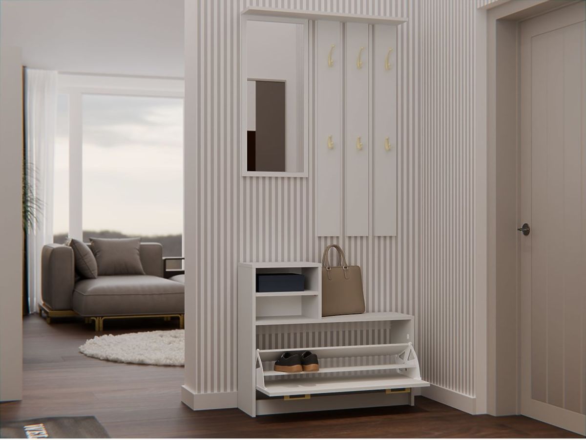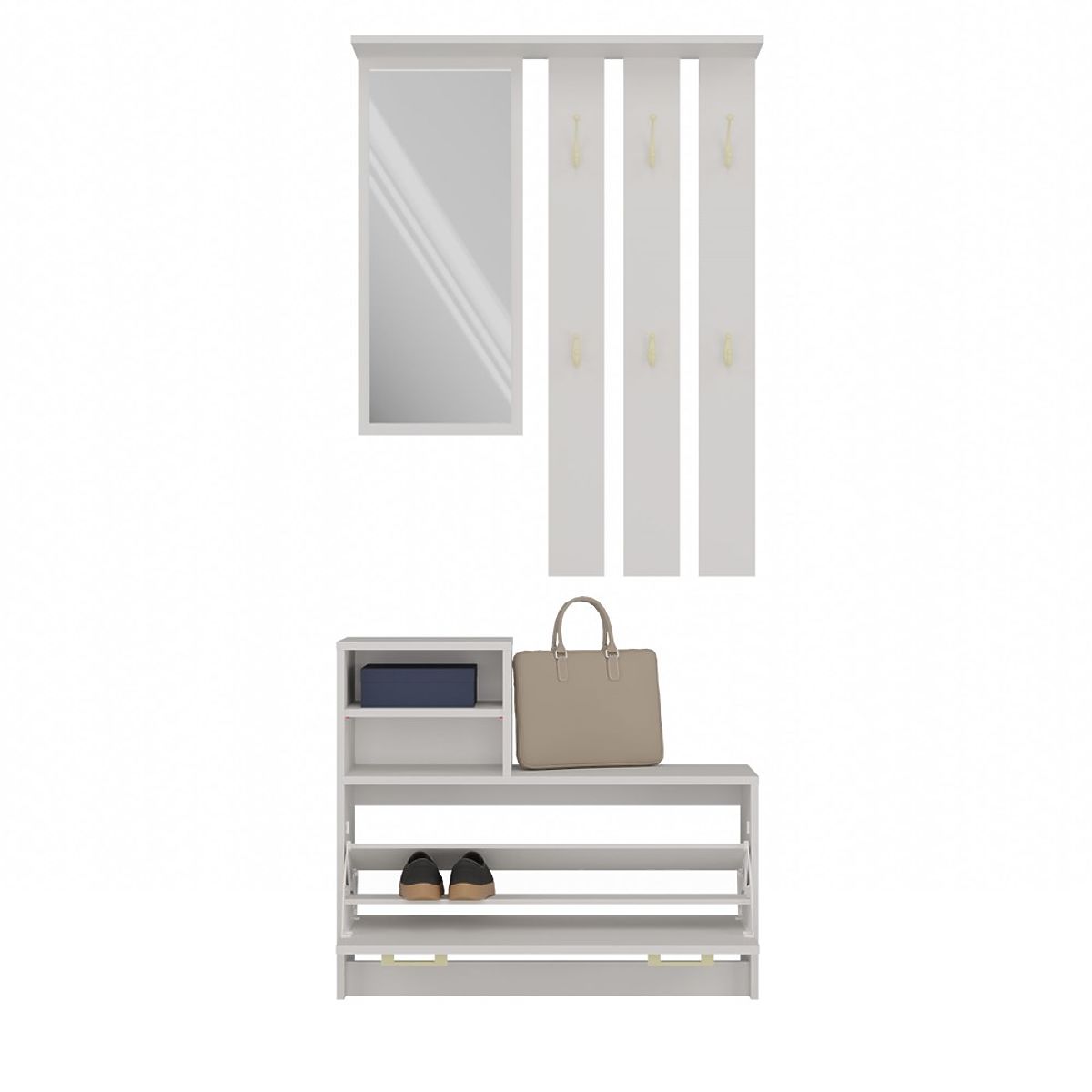 Garderobna omara z ogledalom in omaro za čevlje v barvi kašmir. .. več