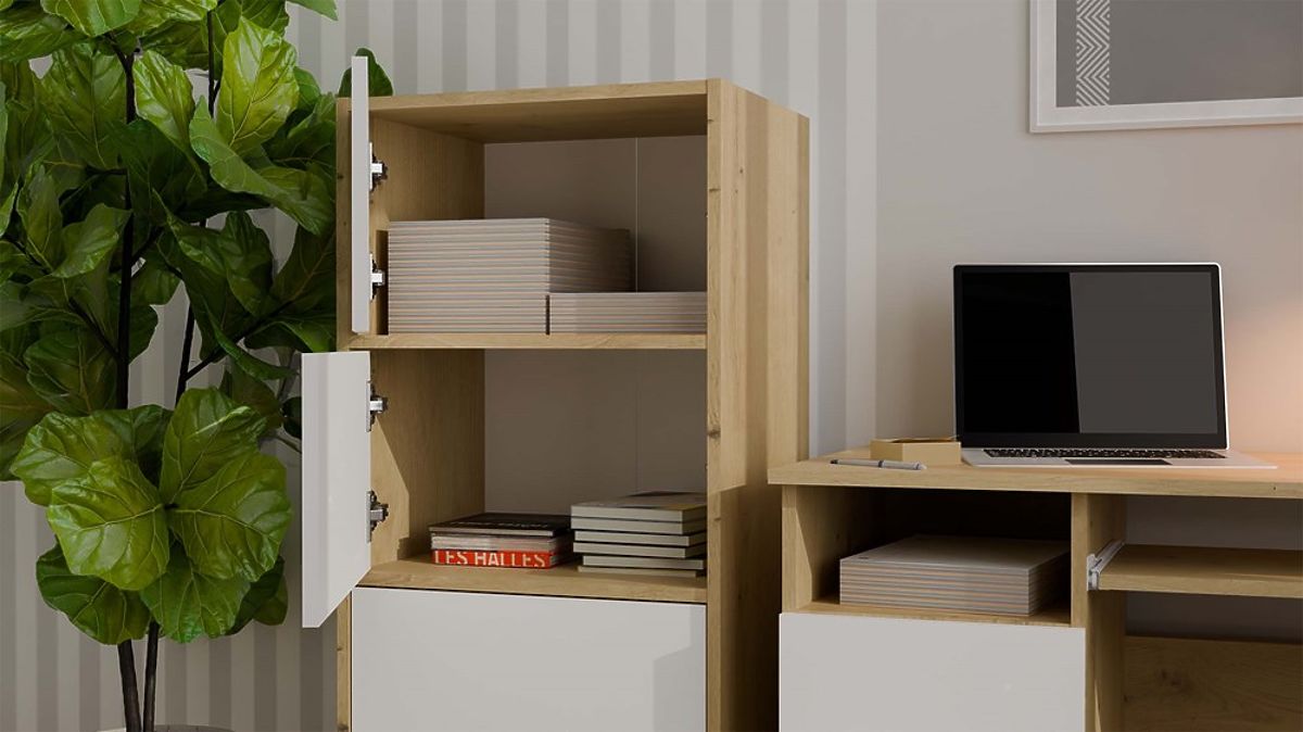 Zahvaljujoč prostornim policam, skritim za gladkimi vrati, komoda nudi veliko prostora za shranjevanje in olajša vzdrževanje reda v vsakem prostoru.