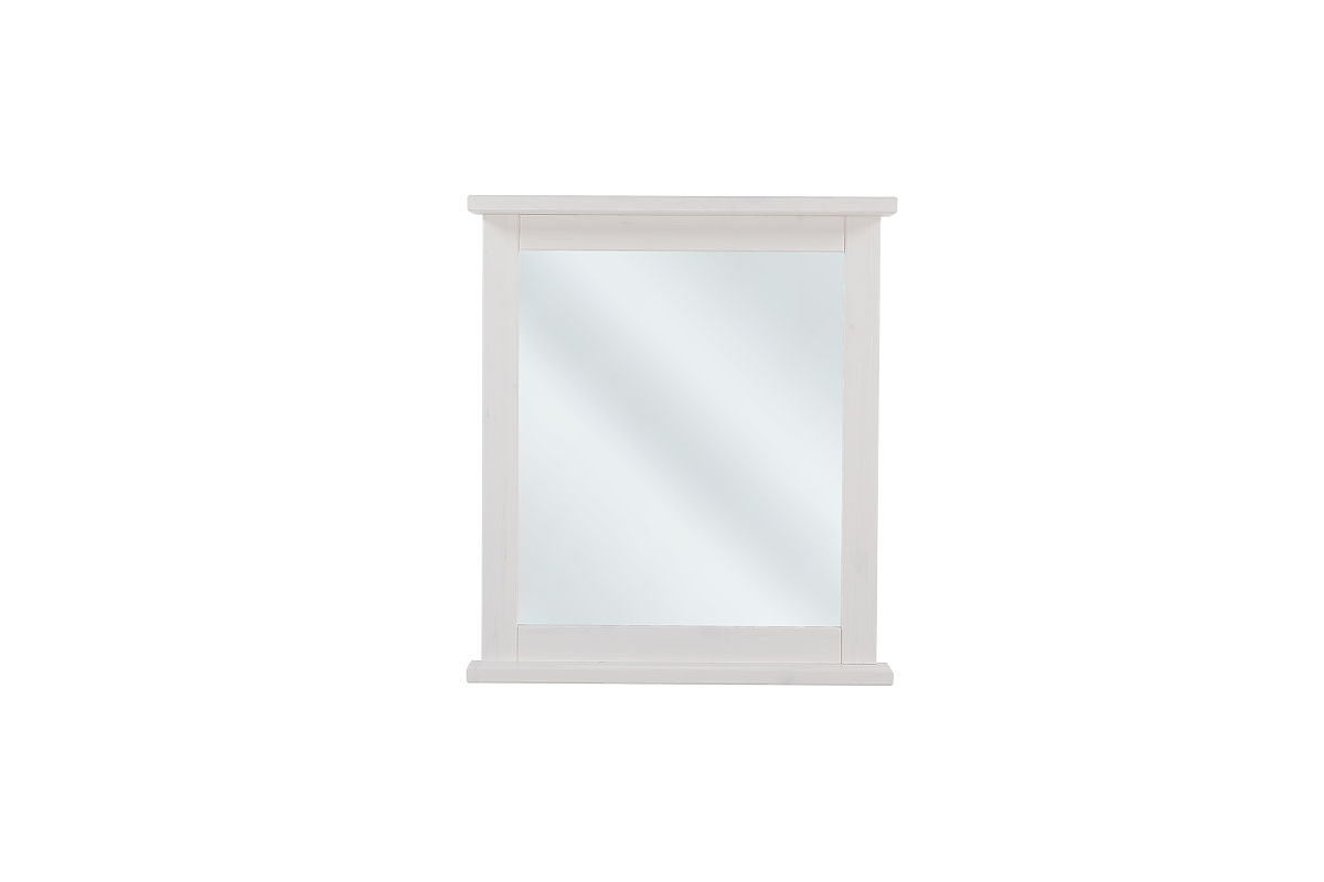Pravokotno ogledalo z belim okvirjem in polico. .. več