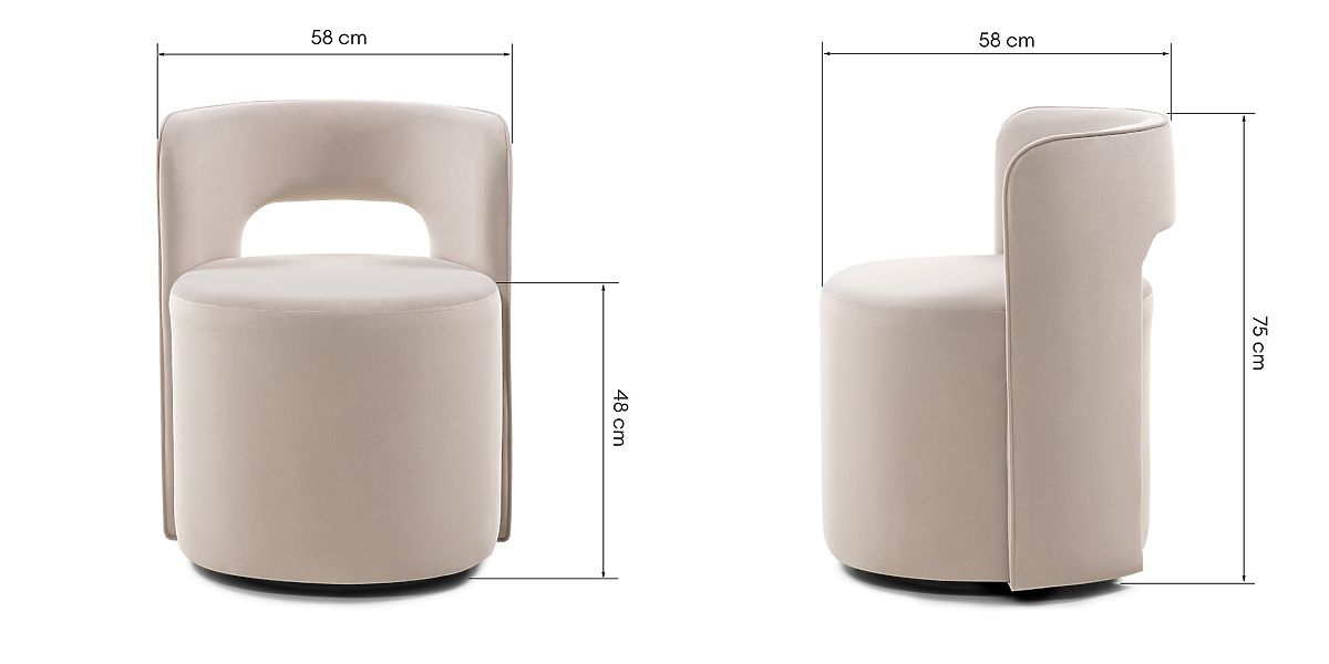 Stol Raval je izjemna izbira za tiste, ki iščejo ravnovesje med slogom in funkcionalnostjo. Njegove zaobljene oblike mu dajejo mehkobo, vrtljiva osnova pa zagotavlja udobje in praktičnost pri uporabi. Zaradi dekorativnega izreza v naslonjalu in mehke žametne tkanine Raval postane ne le prostor za sedenje, temveč tudi eleganten dodatek vsakemu interierju. Odlična alternativa standardnim jedilnim stolom, ki nudi udobje in stilski poudarek.