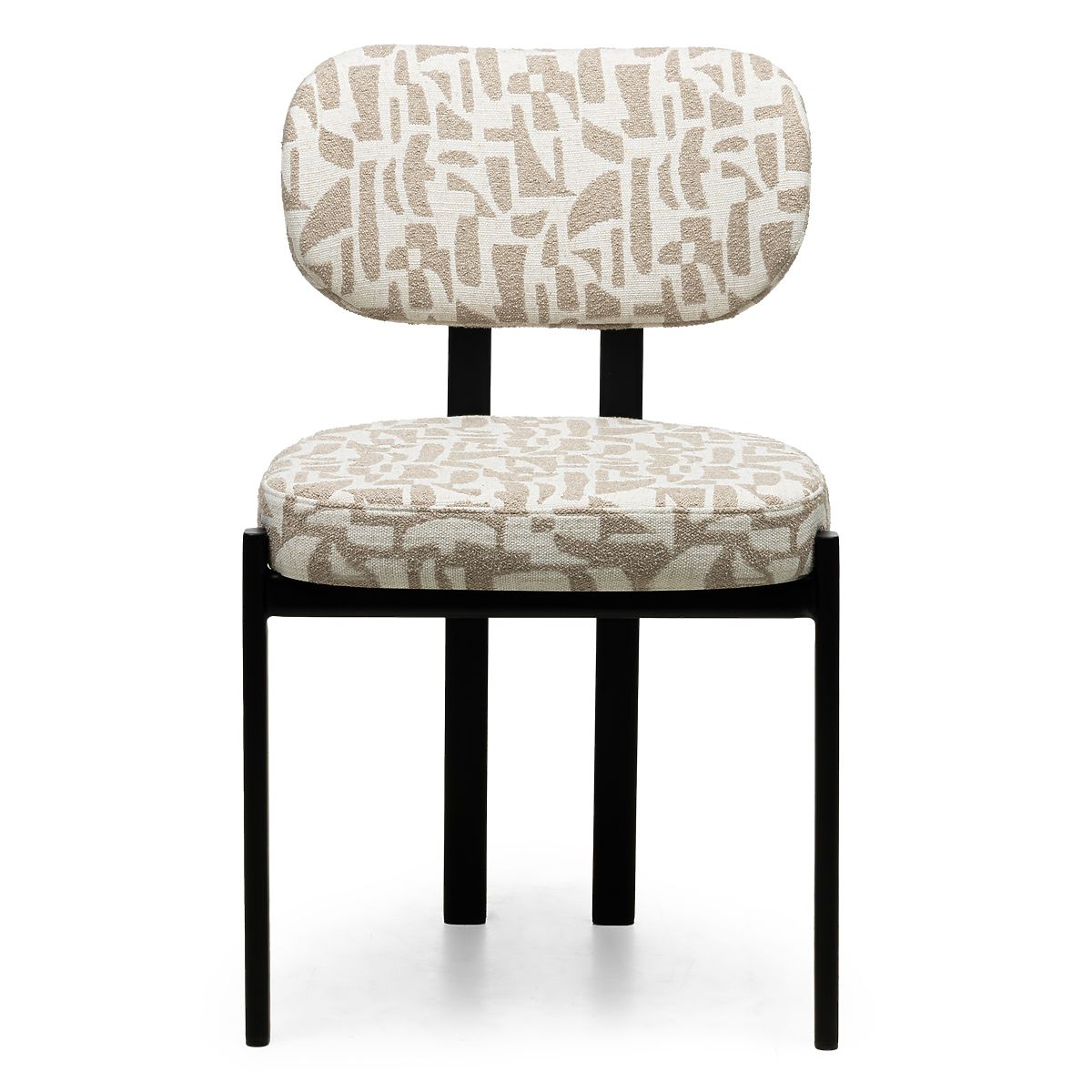 Oblazinjeni stol Flare s črnimi kovinskimi nogami in geometrijskim vzorcem. .. več