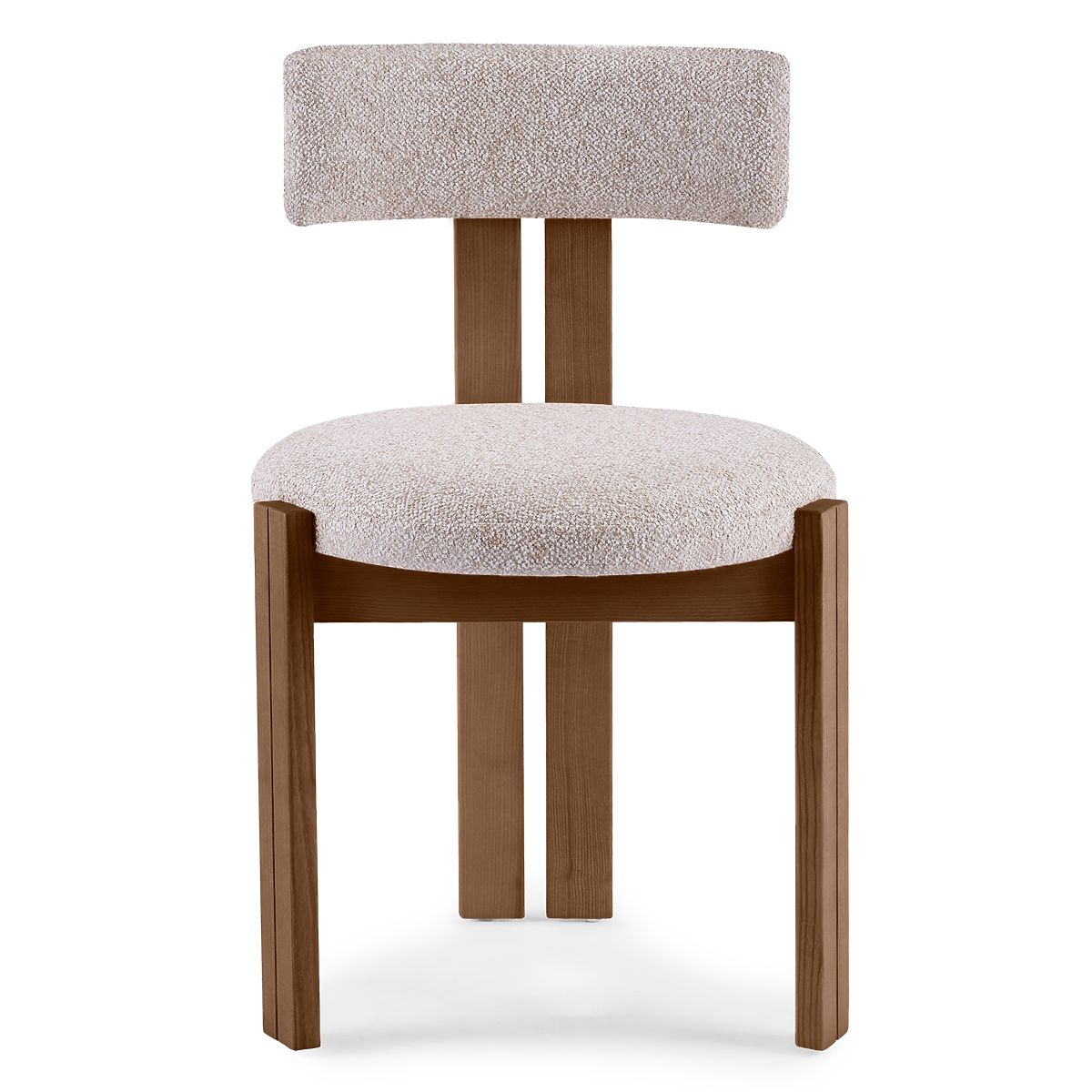 Stol Matteo je odlična izbira za tiste, ki cenijo sodoben dizajn in funkcionalnost. Njegovo mehko, bež-krem oblazinjenje zagotavlja udobje in prijeten značaj, medtem ko konstrukcija iz jasenovega lesa v toplem rjavem odtenku prinaša naravni čar. Vitka oblika brez naslonov poudarja lahkotnost pohištva in zagotavlja udobje pri vsakodnevni uporabi. S tem modelom boste ustvarili prijeten prostor za preživljanje časa z družino za skupno mizo!