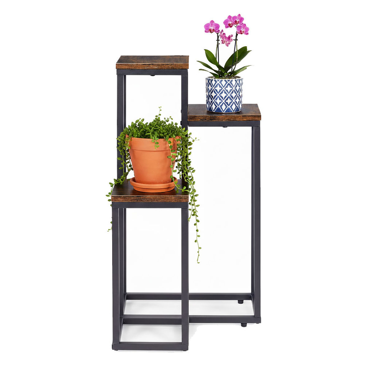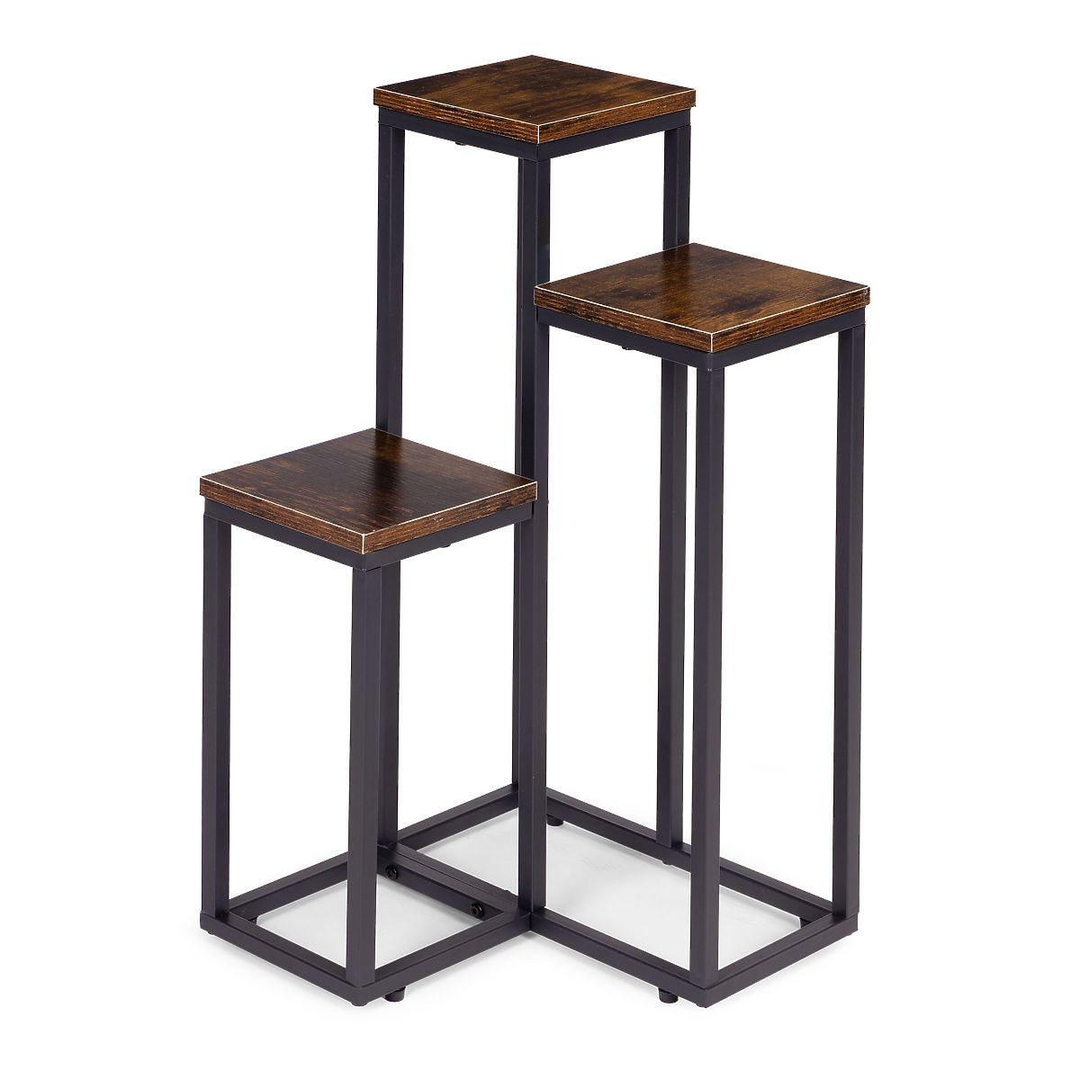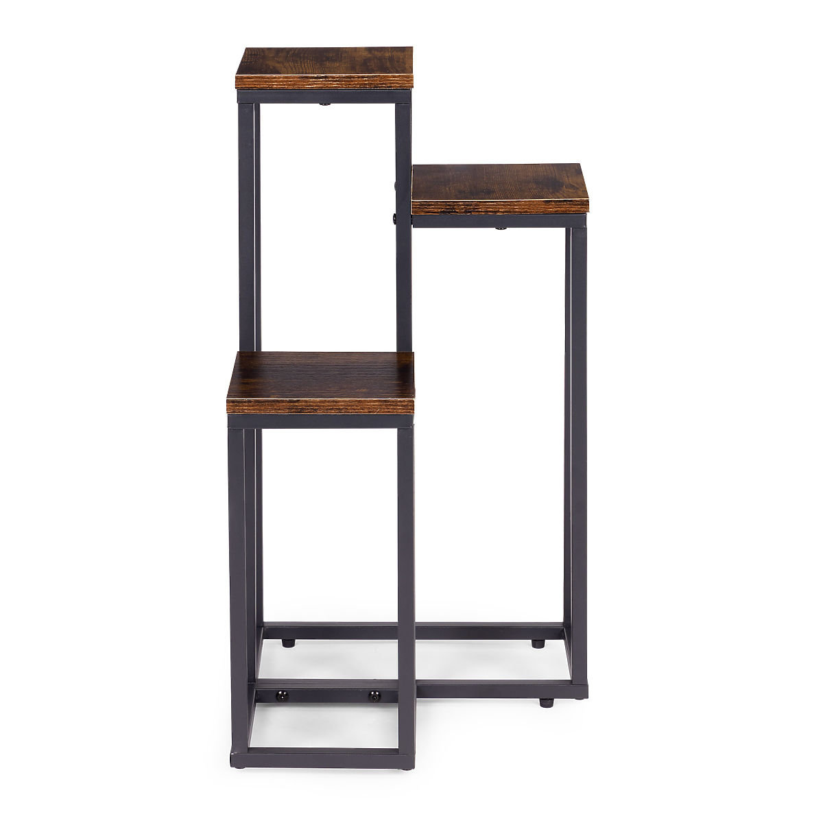 ODPORNI MATERIALIStojalo za rože je izdelano iz jekla s prašnim premazom, kar zagotavlja odpornost proti koroziji in mehanskim poškodbam. Police iz iverke so zaključene v barvi, ki posnema naravni les, kar poudarja dekorativni, loftovski značaj pohištva.