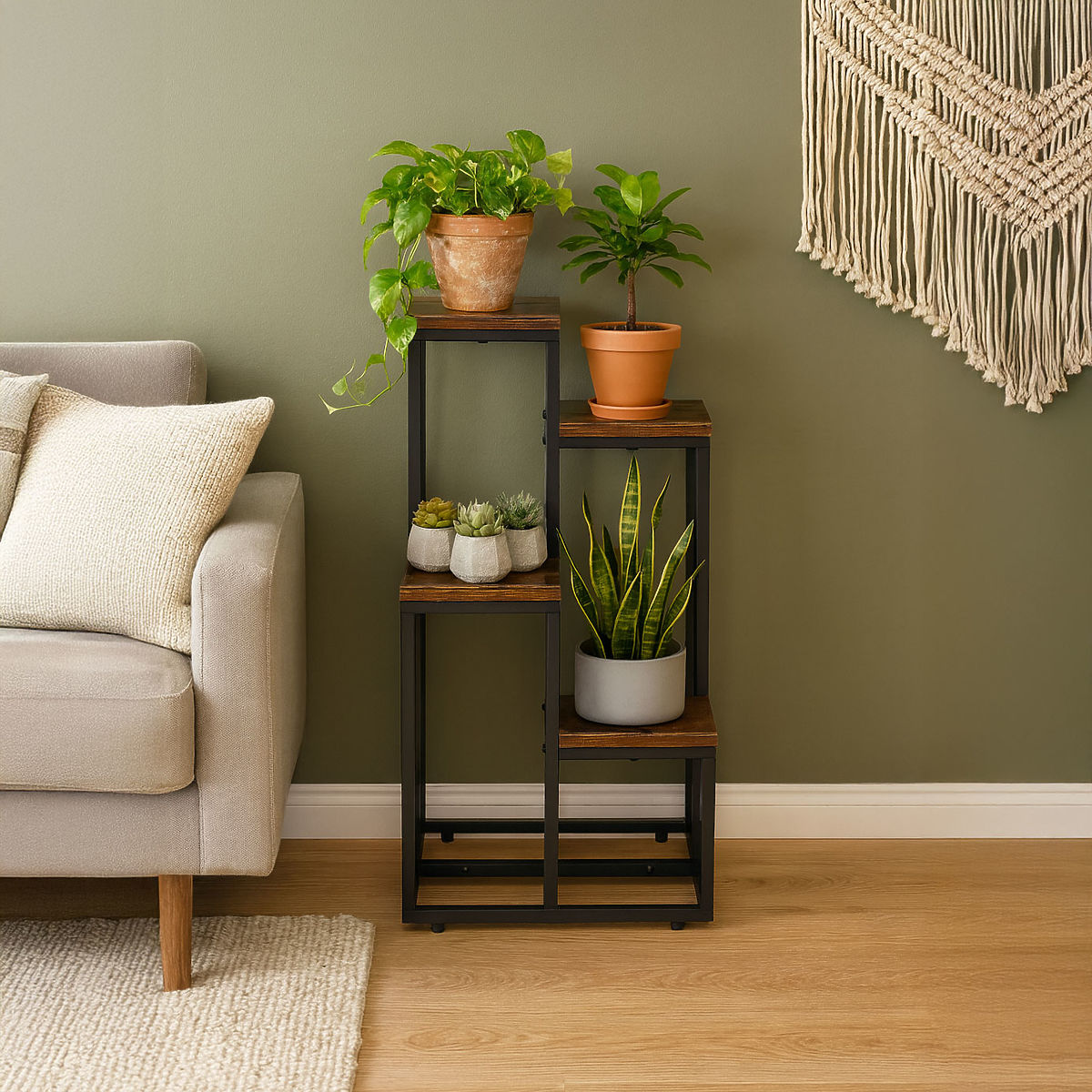 Stojalo za rože ModernHome se odlično prilega vsakemu prostoru – od modernega dnevnega prostora do stilizirane pisarne. Zaradi univerzalnega dizajna in kompaktnih dimenzij omogoča maksimalno izkoriščenost prostora in omogoča učinkovito aranžiranje rastlin. Na njega lahko postavite lončke z zelišči v kuhinji, praproti v hodniku ali celo okrasne rastline v predsobi. Je to odlična rešitev za tiste, ki želijo v svoj prostor vnesti več zelenja in elegance ter tako poživiti vsak interier. Dodajte ga v svoj prostor in uživajte v lepoti rastlin vsak dan.