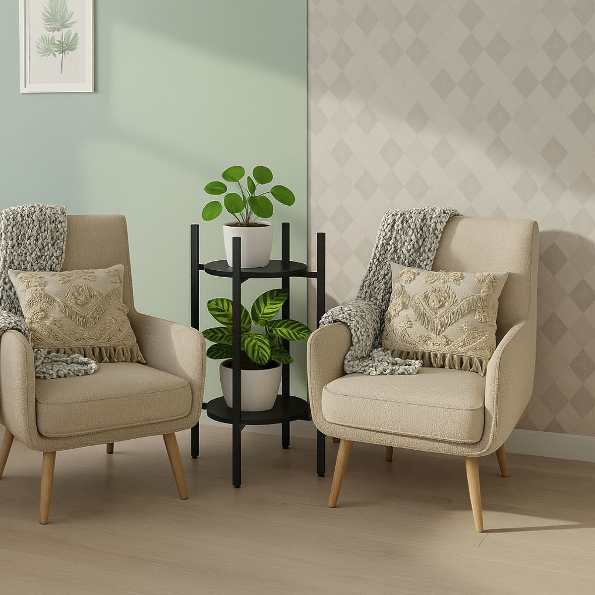 Stojalo za rože ModernHome je odlično za vsak prostor – od sodobne dnevne sobe do elegantne pisarne. Zahvaljujoč univerzalnemu dizajnu in kompaktnim dimenzijam omogoča maksimalno izkoriščenost prostora in omogoča učinkovito aranžiranje rastlin. Na njem lahko postavite zelišča v kuhinji, praproti v hodniku ali dekorativne rastline v predsobi. To je odlična rešitev za tiste, ki želijo dodati več zelenja in elegance v svoje okolje, oživljajoč vsak interier. Dodajte ga v svoj prostor in uživajte v lepoti rastlin vsak dan.