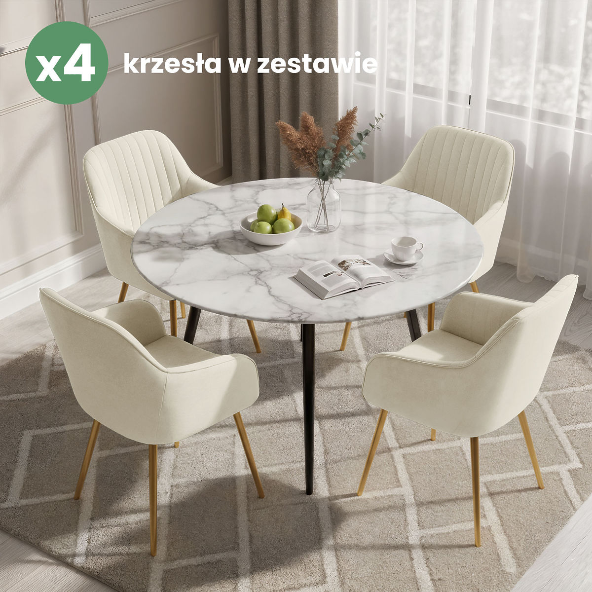 Lukahome.si » Jedilnica in kuhinja / Jedilnica stol / 4x Žametni oblazinjeni stol s prešitjem Krem FLORENCE Zlate noge