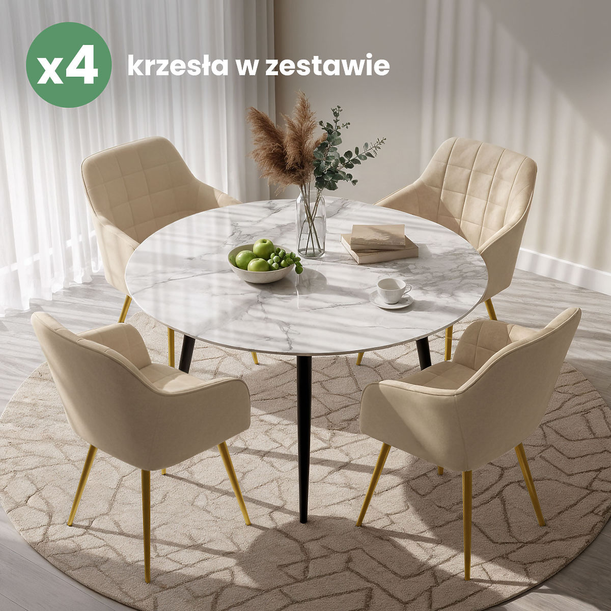 Lukahome.si » Jedilnica in kuhinja / Jedilni stoli / 4x Oblazinjeni stol s kvadratnim prešitjem Bež LUXANO Zlate noge
