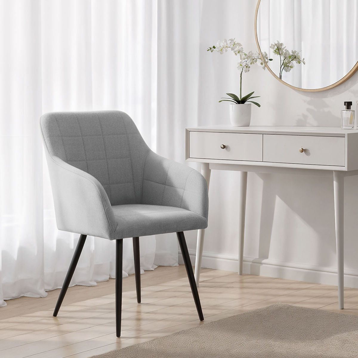 Lukahome.si » Jedilnica in kuhinja / Jedilnica stol / 4x Oblazinjeni stol s kvadratnim prešitjem Svetlo Siva LUXANO Črne noge tkanina Lumos