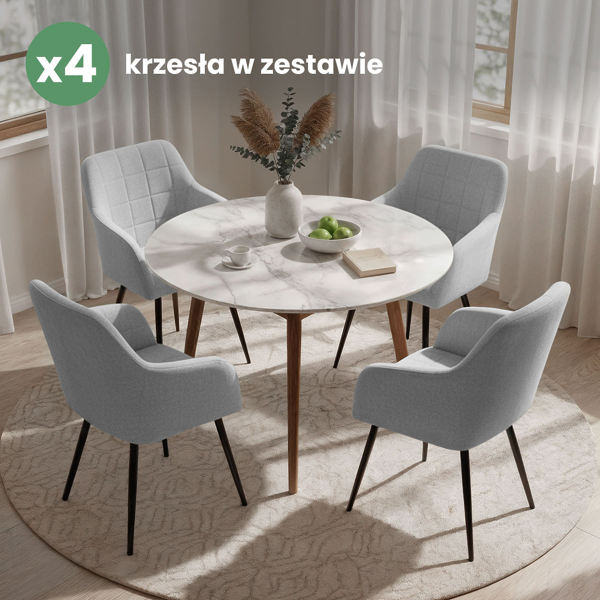 Oblazinjeni stoli združujejo estetski videz s komfortom uporabe in se dobro prilegajo različnim stilom interierjev. Njihova univerzalna oblika jih naredi primerne za jedilnico, dnevno sobo ali pisarniški prostor. Na voljo so v dveh materialnih različicah – v tkanini Lumos ali v velurju.