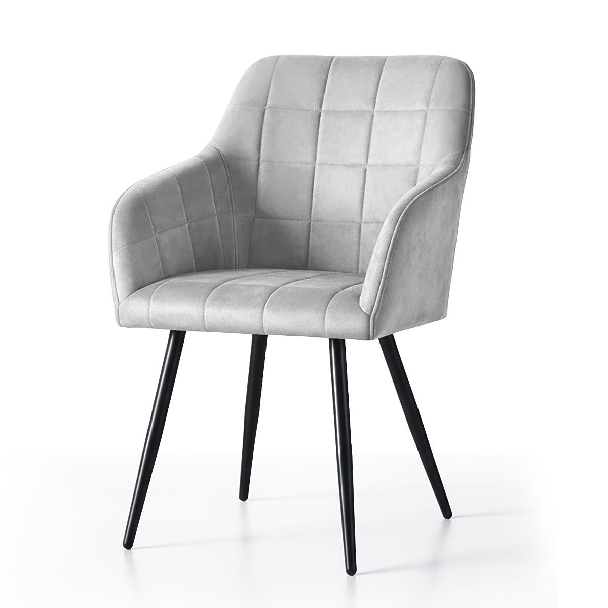 Oblazinjeni stol LUXANO s sivo žametno tkanino in črnimi nogami. .. več