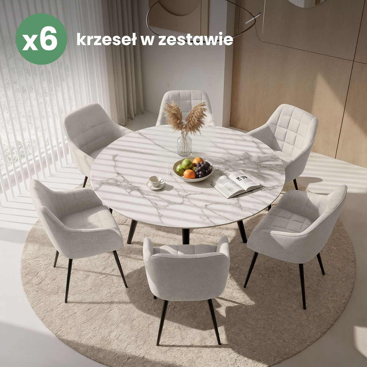Lukahome.si » Jedilnica in kuhinja / Jedilnica stol / 6x Oblazinjeni stol s kvadratnim prešitjem Krem LUXANO Črne noge tkanina Lumos