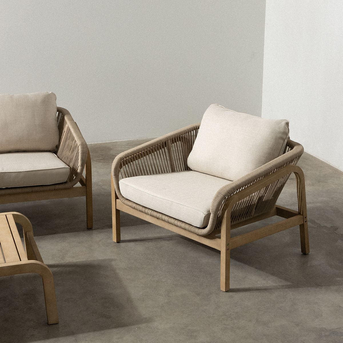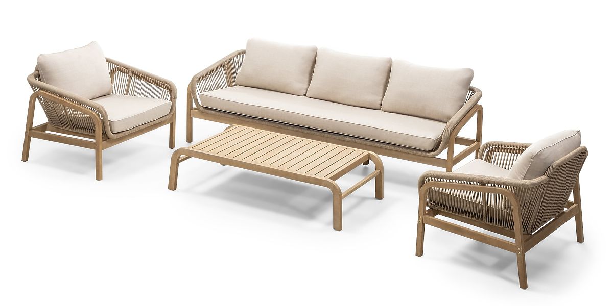 Garnitura je sestavljena iz troseda, dveh foteljev in klubske mizice. Zaradi robustne konstrukcije in kakovostnih materialov je primerna za zunanjo uporabo.