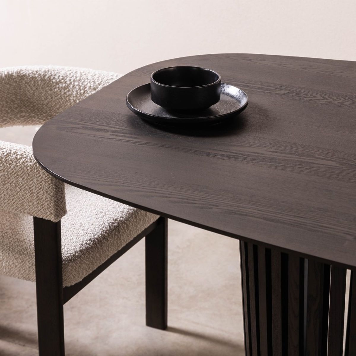 Miza Araia je izjemen kos pohištva, ki navdušuje s svojim edinstvenim dizajnom. Zaradi nje vaša jedilnica pridobi ne le funkcionalen značaj, temveč tudi izjemen čar. Osnova mize Araia je nežno obogatena z dekorativnimi letvicami, ki ji dajejo nežen značaj. Ti drobni detajli naredijo mizo osrednjo točko vsakega interierja. Miza Araia se odlično prilega tako elegantnim kot modernim prostorom. Je popoln prostor za družinska kosila, romantične večerje ali srečanja s prijatelji, saj ustvarja nepozabno vzdušje in udoben prostor za skupno preživljanje časa.