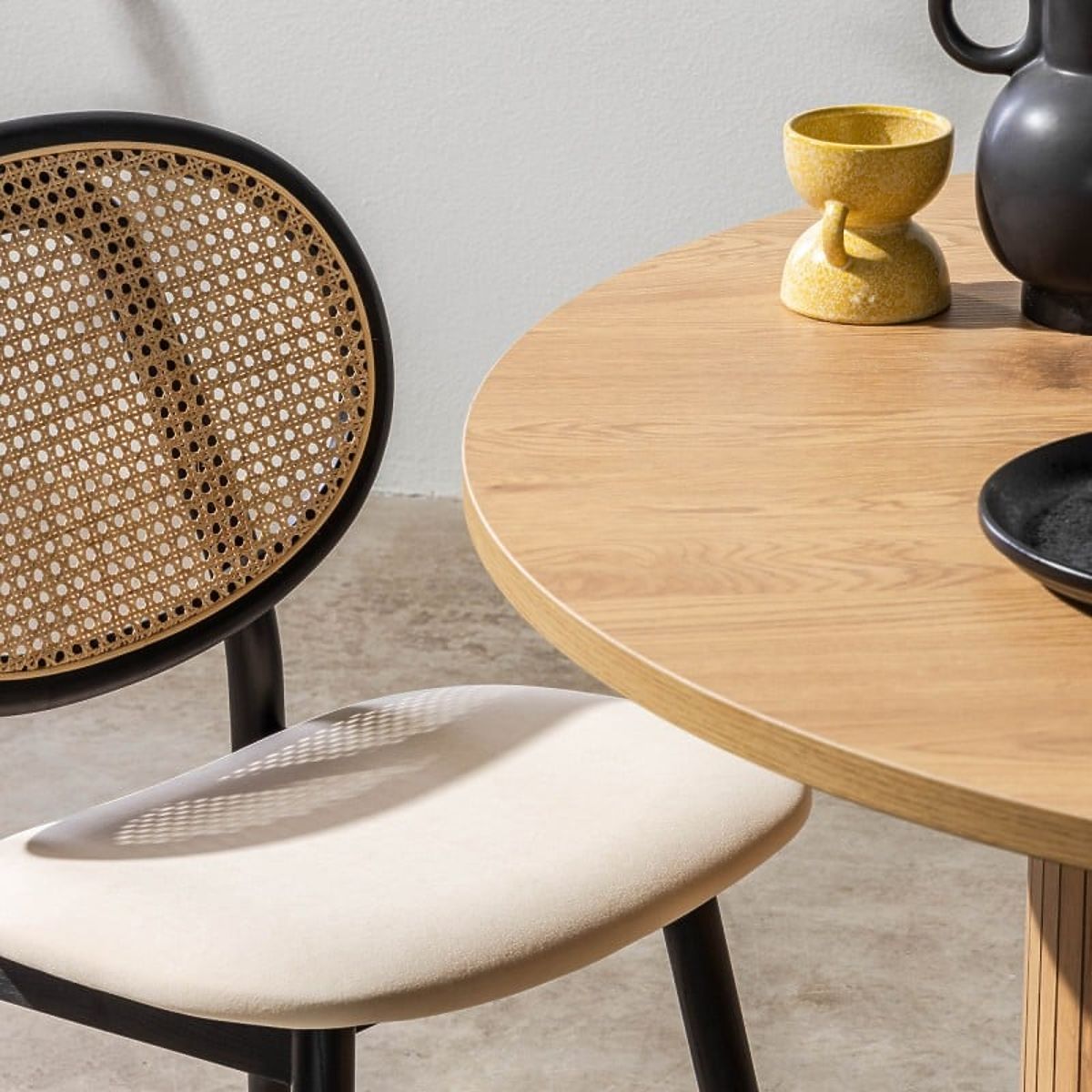 Lukahome.si » Jedilnica in kuhinja / Jedilni stoli / Leseni stol Monet z dunajsko pletenino, ratan, žamet, črna/bež