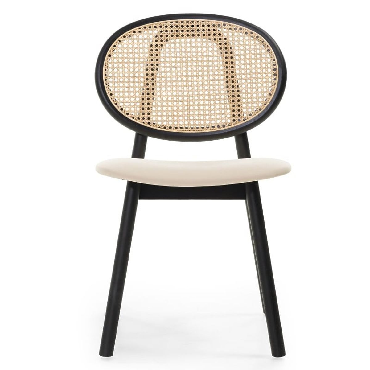 Črn leseni stol Monet z dunajsko pletenino in bež žametom. .. več
