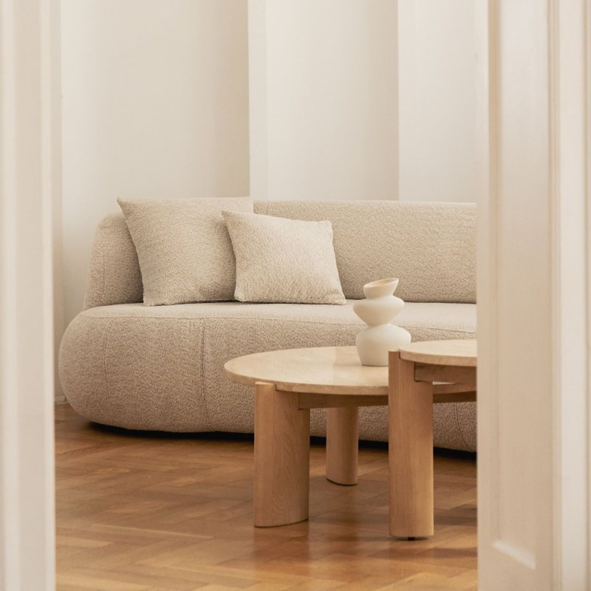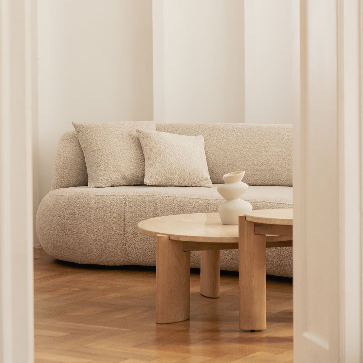 Okrogla miza Medley iz travertina in jesena za eleganten interier. .. več