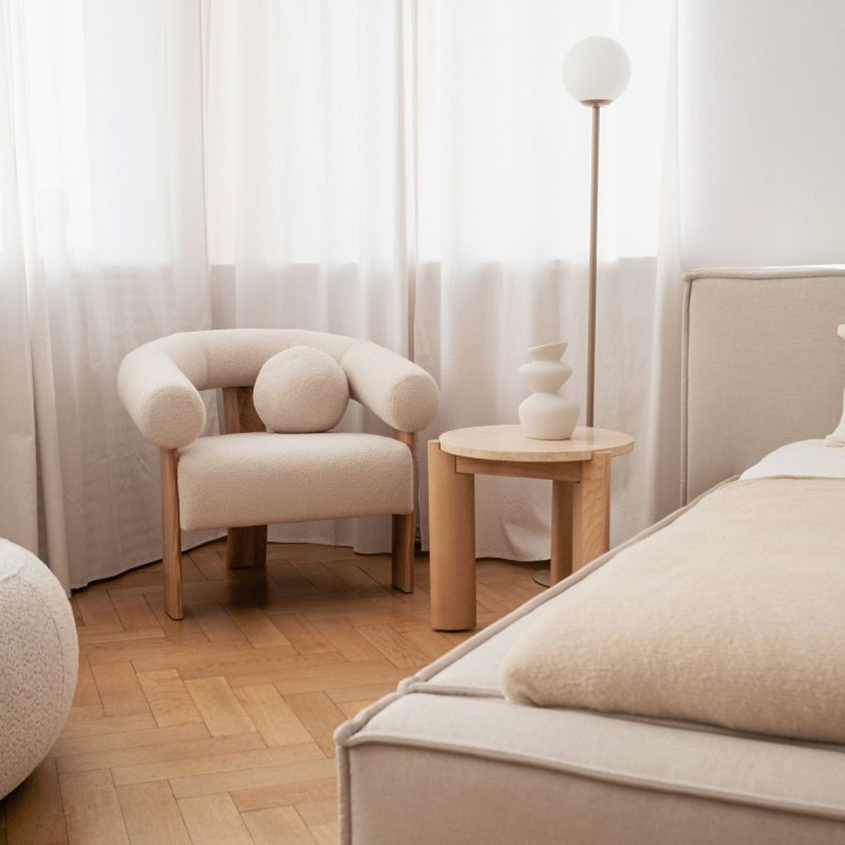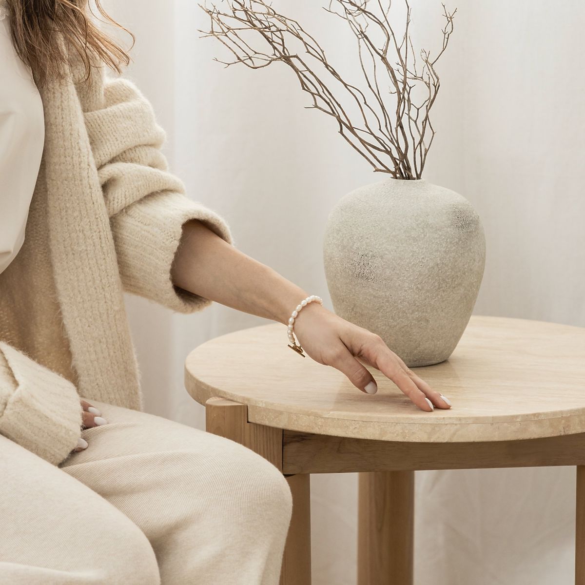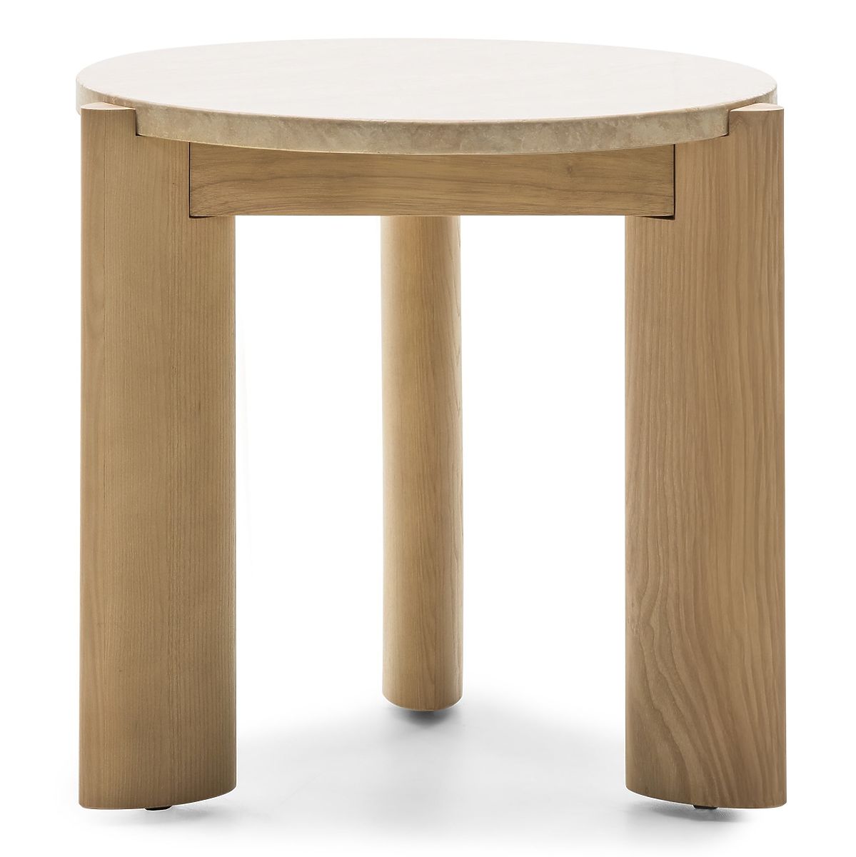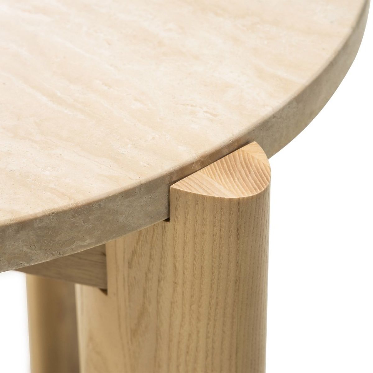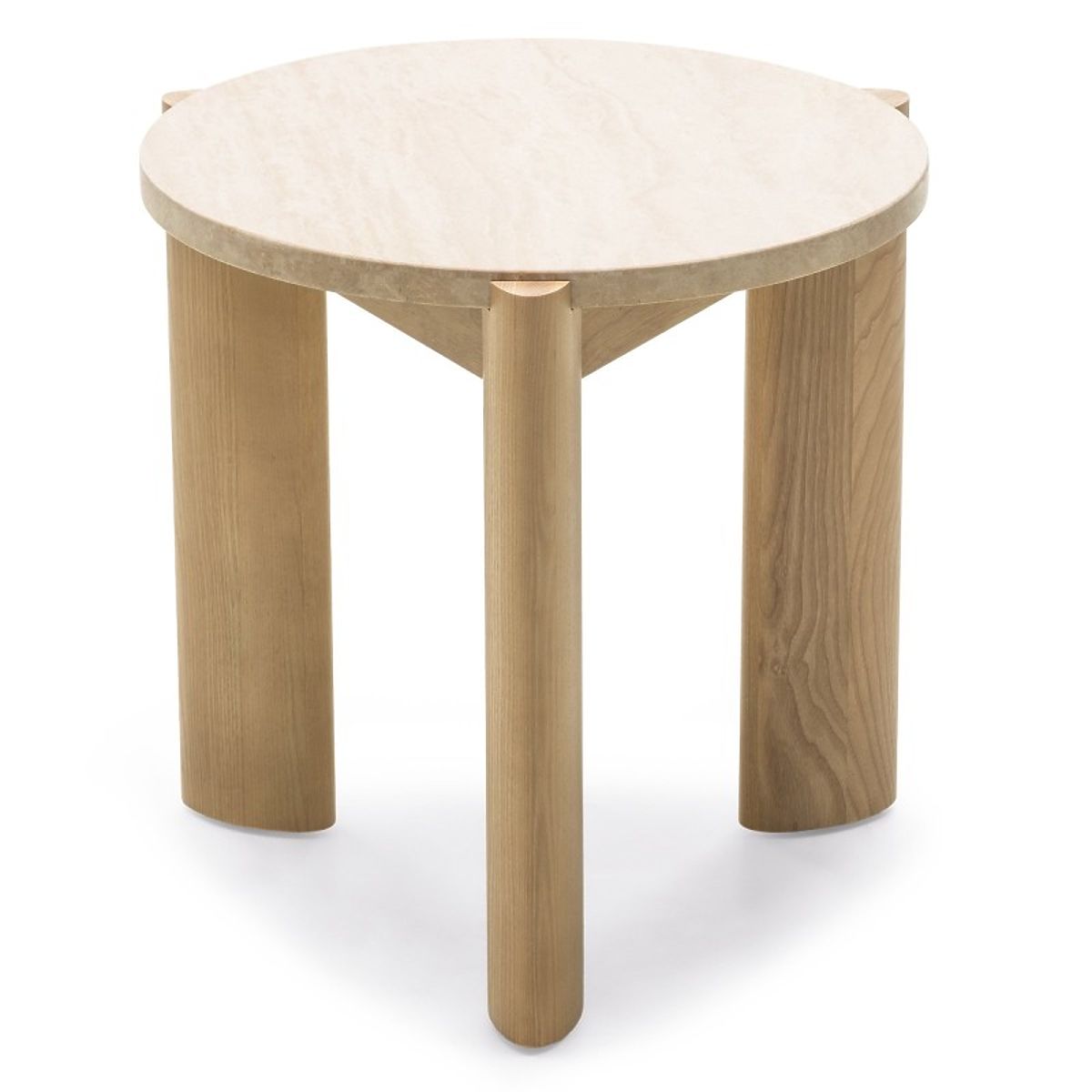Okrogla stranska miza iz travertina in jesena. .. več