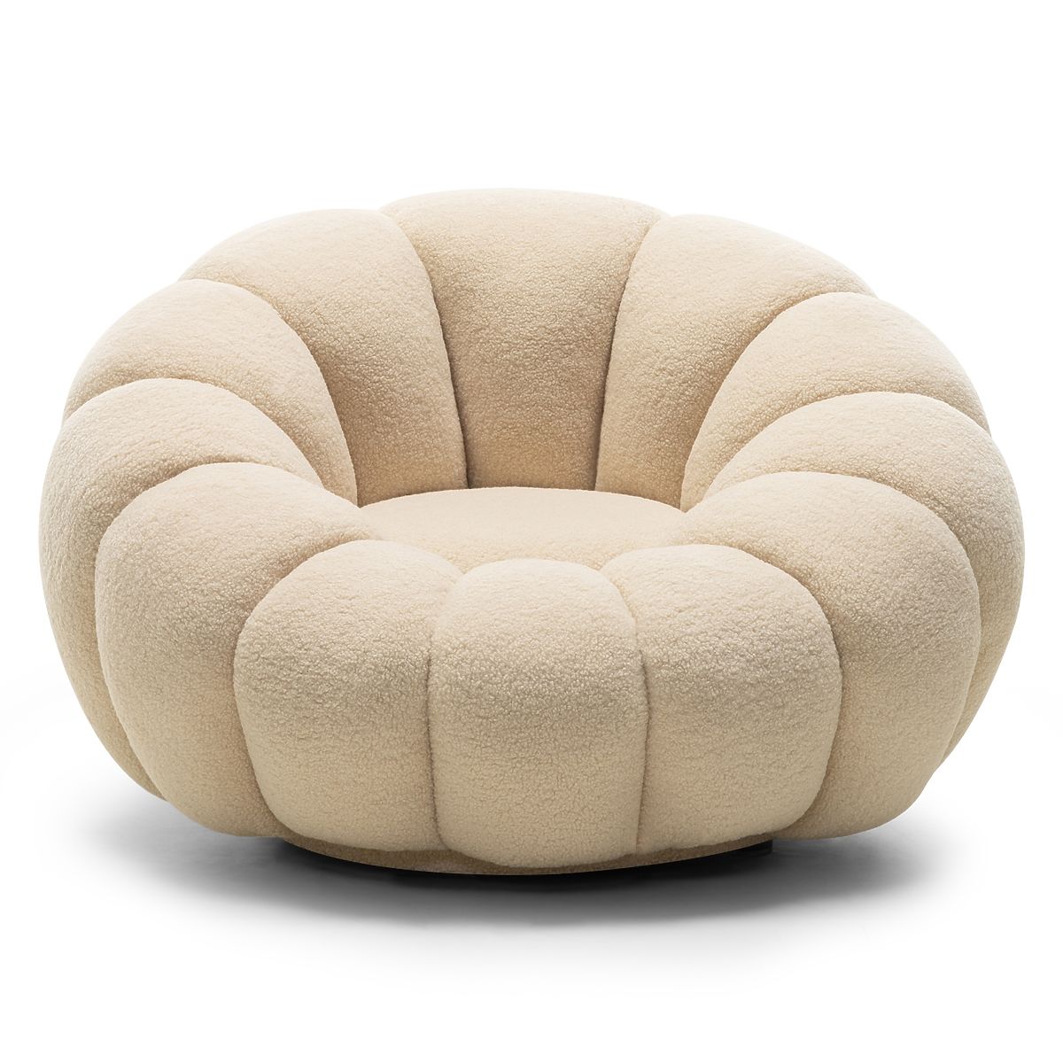 Lukahome.si » Fotelji in sedeži / Fotelji / Relaksacijski stol Venezia bež z vrtljivo osnovo, boucle, zaobljene oblike