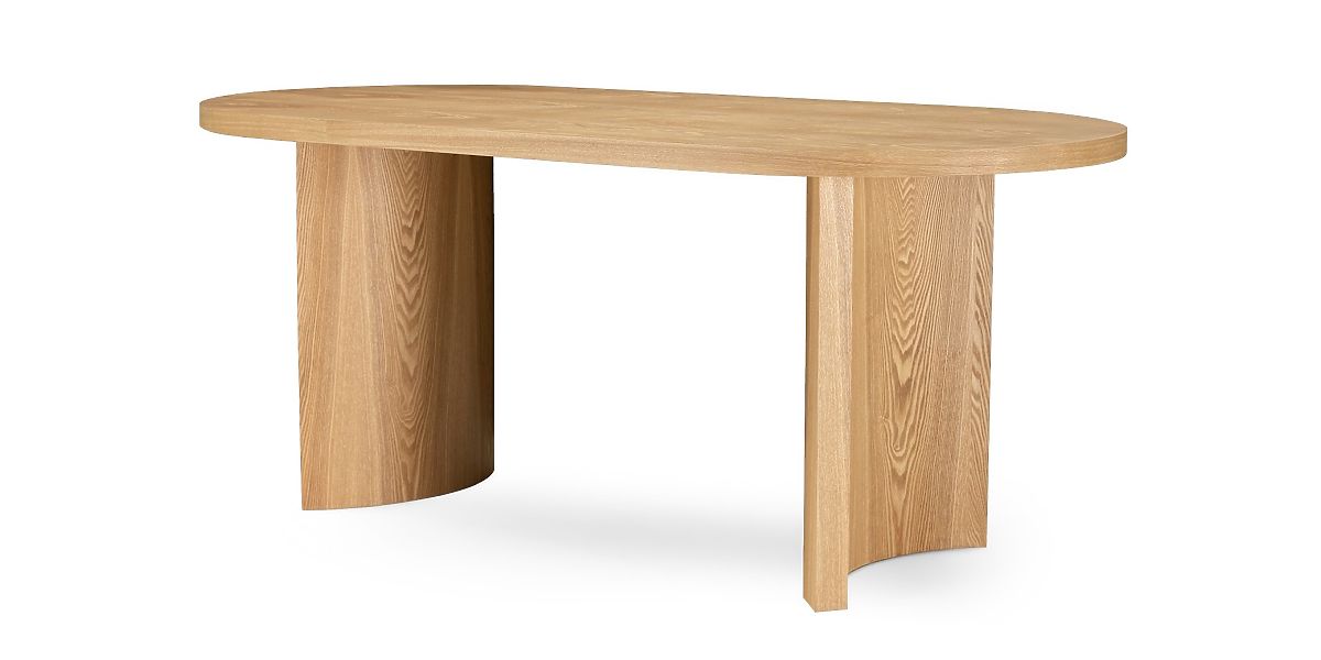 Jedilna miza Portofino je popoln kraj za skupno obedovanje. Ovalna oblika plošče spodbuja sproščen pogovor in zagotavlja, da ima vsak gost enak dostop do mize. Izdelana je iz MDF plošče, prekrite z jesenovim furnirjem, ki združuje naravno lepoto lesa s trpežnostjo in enostavnim vzdrževanjem. Edinstvene noge mize dodajo značaj in stabilnost, kar ustvarja udoben prostor. Portofino ni le pohištvo, ampak tudi središče domačega življenja. Prinesite kanček elegance in uživajte v vsakodnevnih trenutkih skupaj v elegantnem okolju.