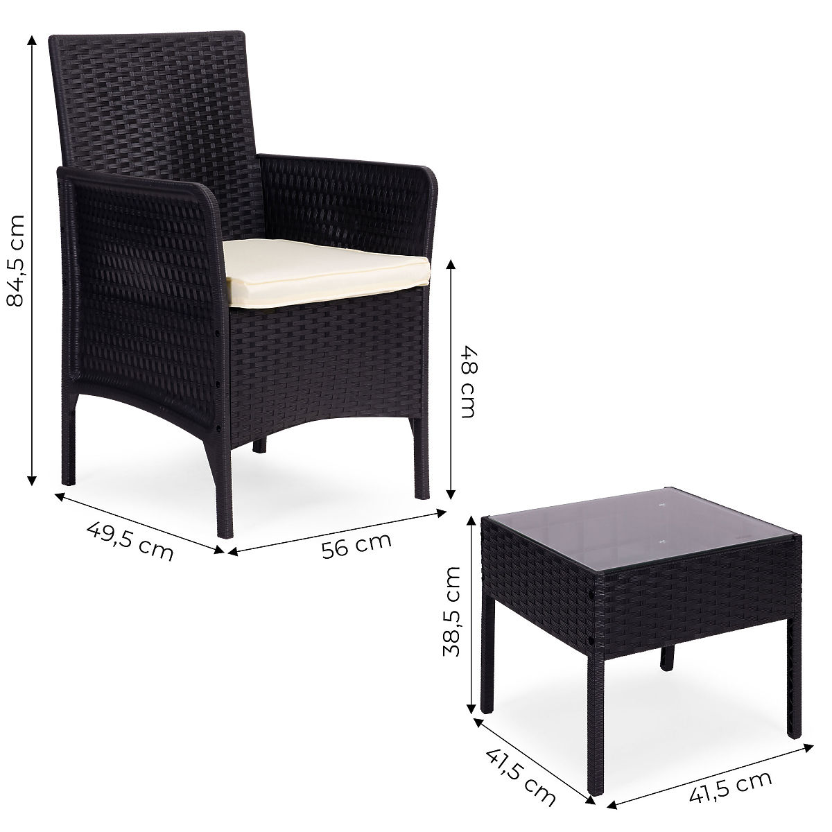 Lukahome.si » Vrtno pohištvo / Vrtni kompleti / Komplet vrtnega pohištva 2 stola + miza kaljeno steklo črna MultiGarden