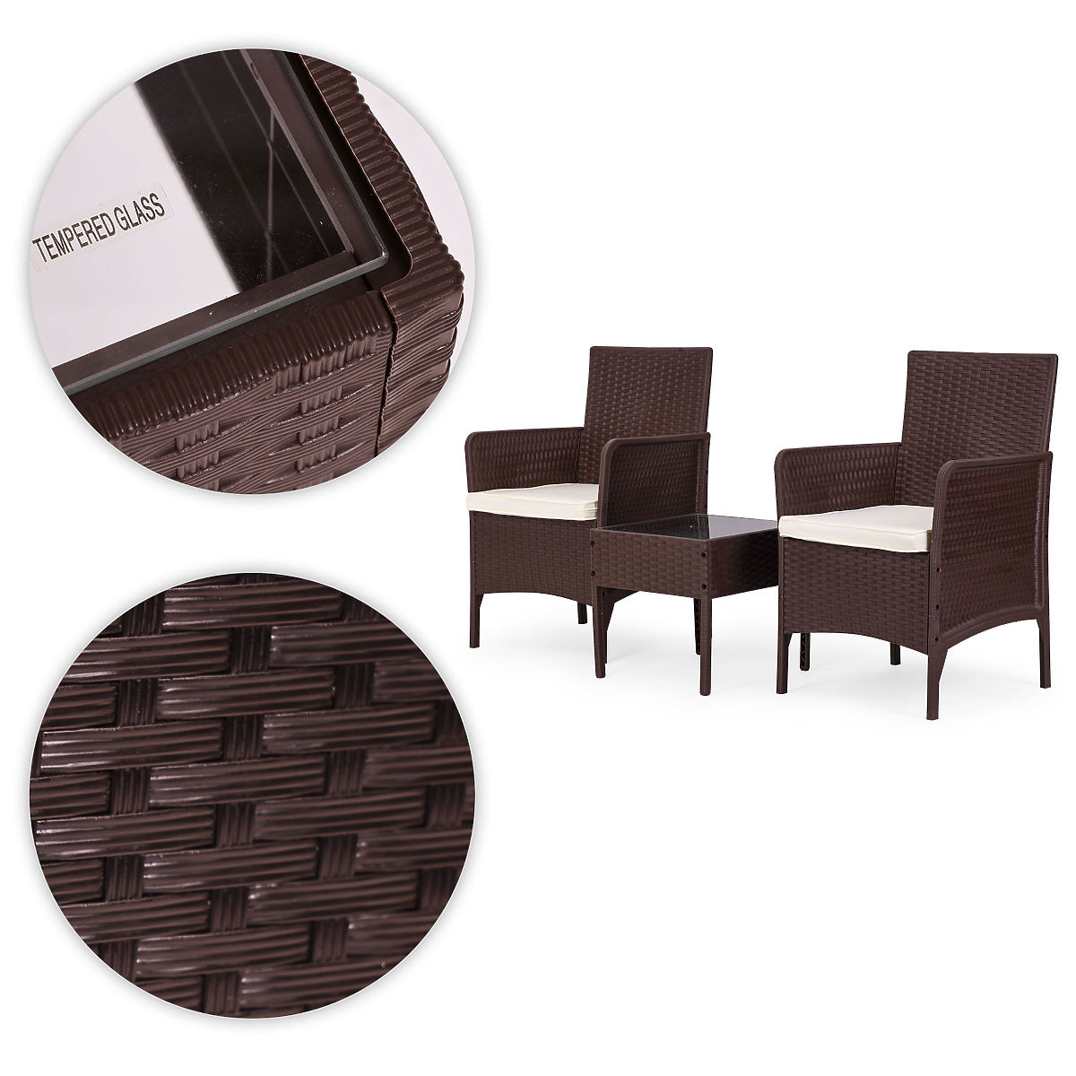 Lukahome.si » Vrtno pohištvo / Vrtni kompleti / Vrtna garnitura 2 stola + miza kaljeno steklo rjava MultiGarden