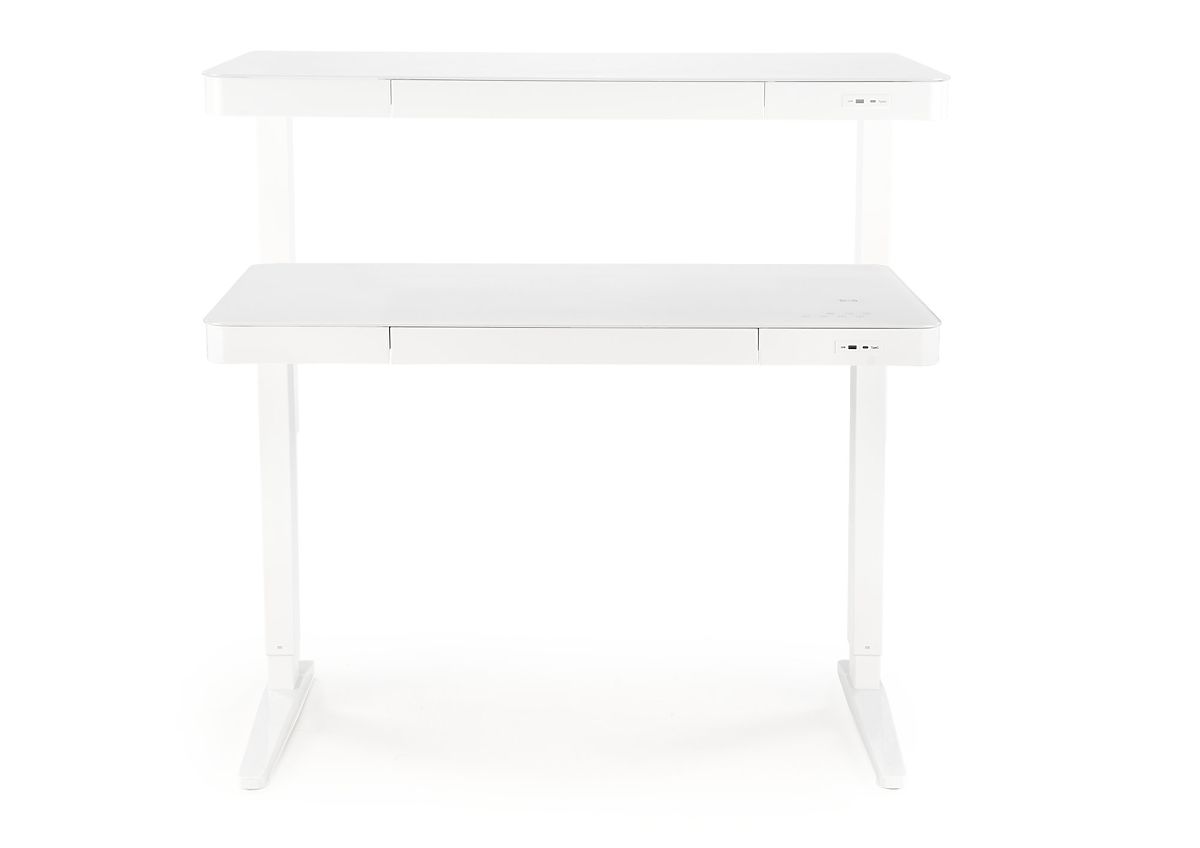 dimenzije: 120/60/77-120 cm; miza z nastavljivo višino / zaslon na dotik / brezžično polnjenje / USB priključek, material: steklo / prašno lakirano jeklo, barva: bela