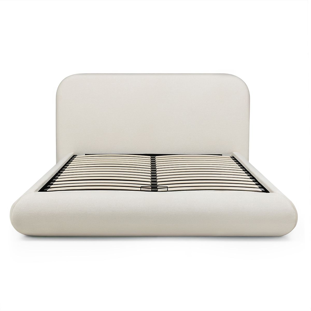 Lukahome.si » Postelje / Zakonske postelje / Postelje 160x200 / Oblazinjena postelja Lumi 160x200 cm, z letvami in shranjevalnim prostorom, zaobljena, svetlo bež