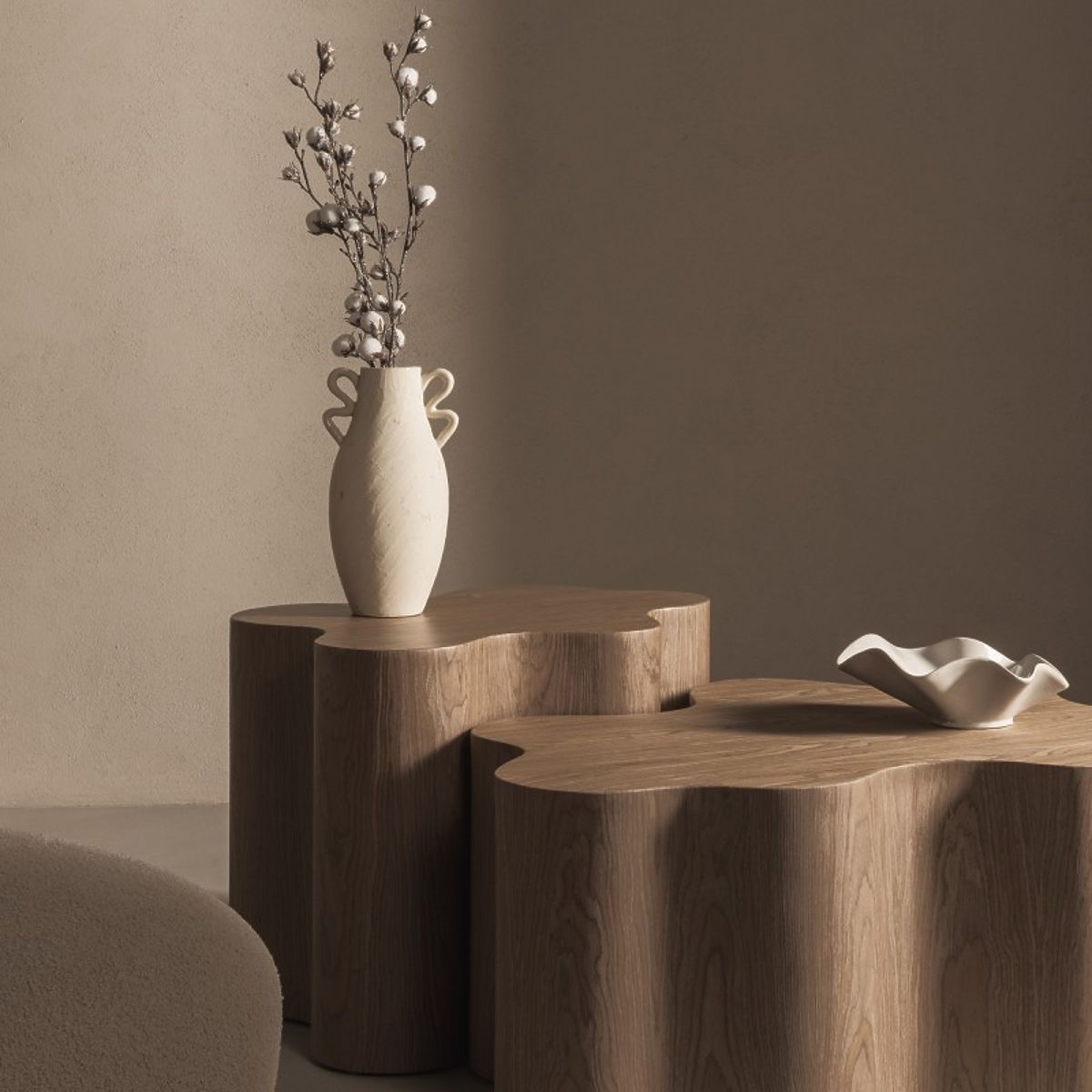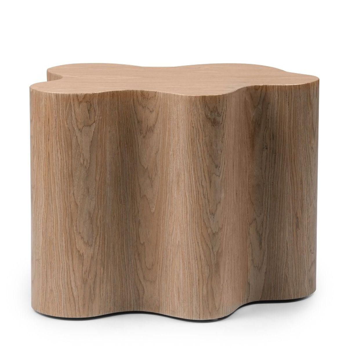 Stranska mizica Cosmo z zaobljenimi oblikami in orehovim furnirjem. .. več