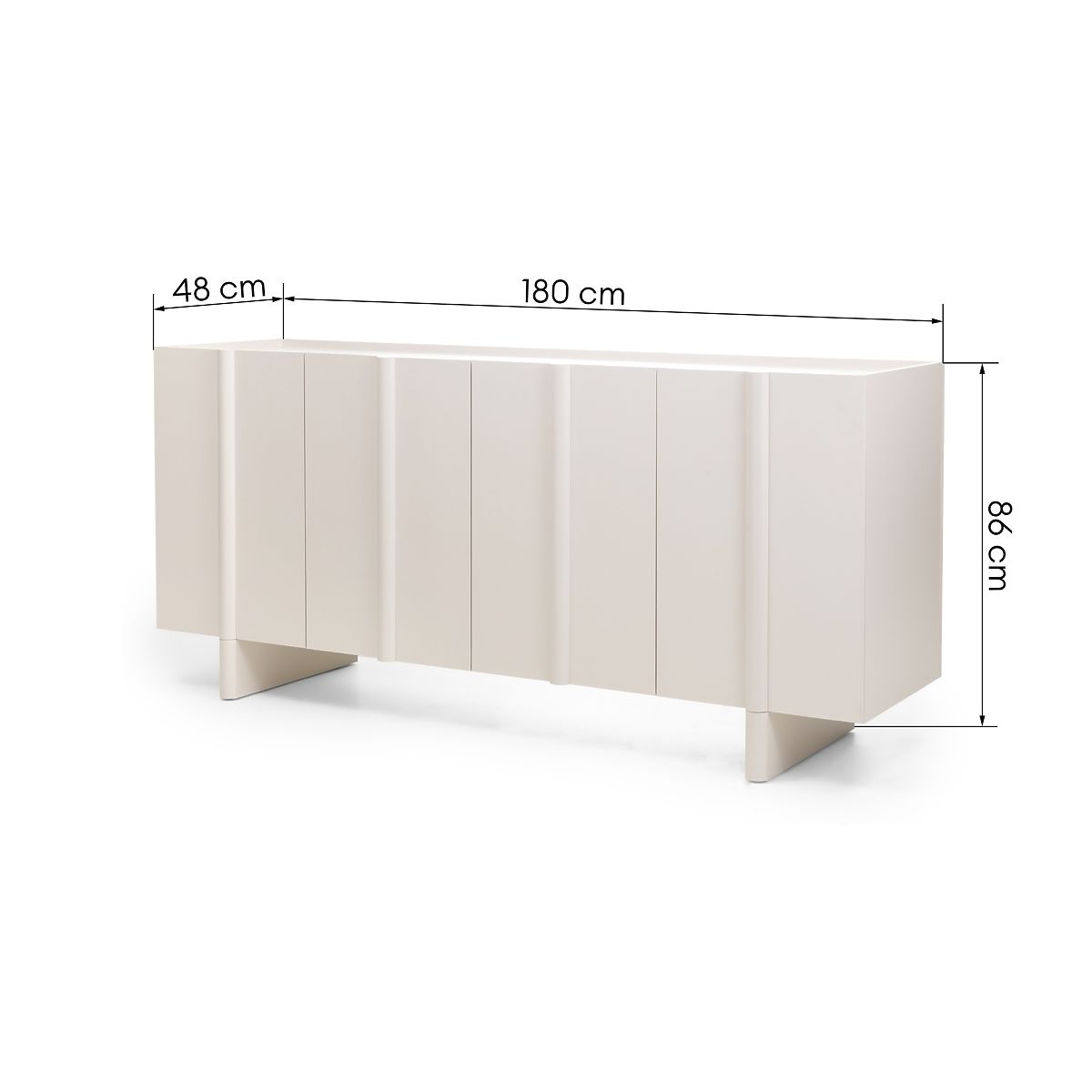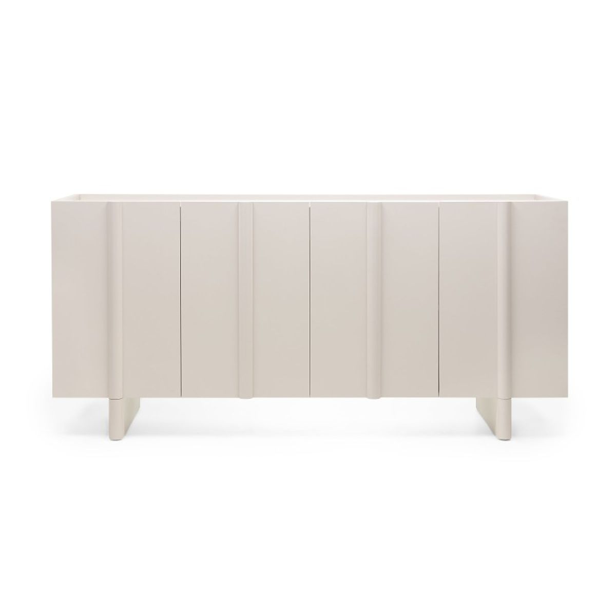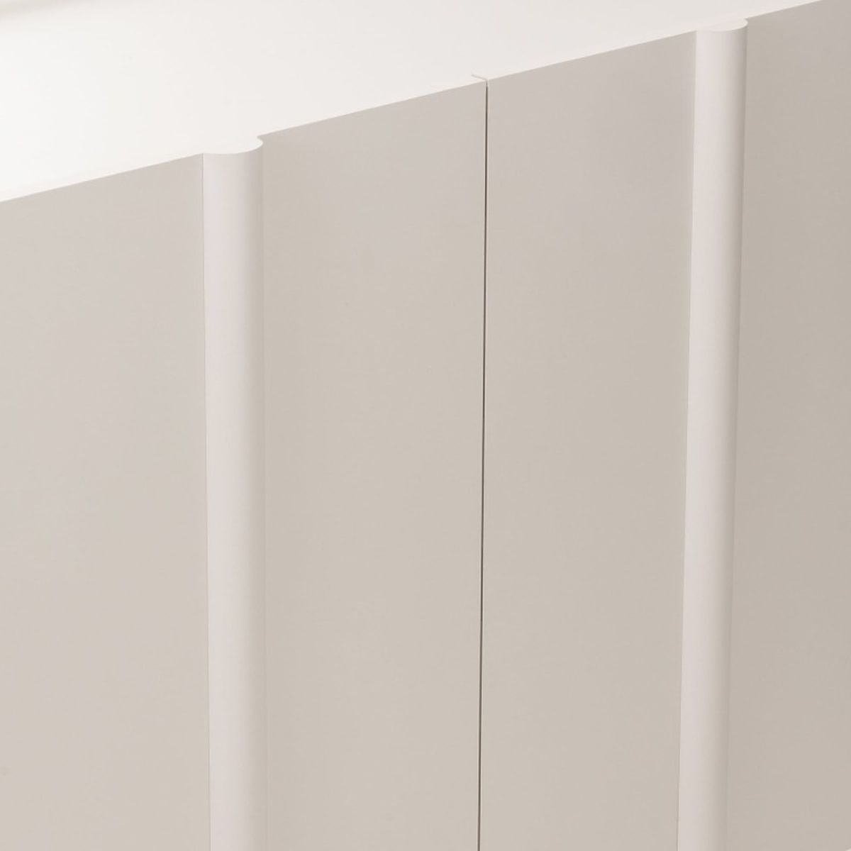 Edinstven kašmir odtenek, ki je sinonim za nežno eleganco, se zlahka prilagodi kateri koli barvni paleti in ustvarja toplo in prijetno okolje. Dekorativna zaobljenost na sprednjih straneh daje komodi mehkobo in sodoben značaj, hkrati pa zmehča vzdušje celotne sobe.