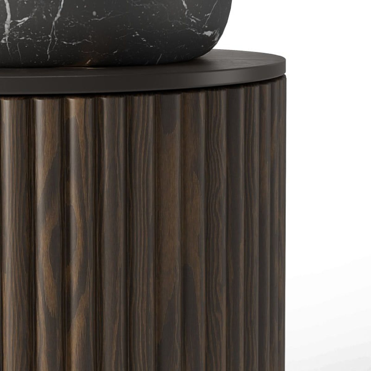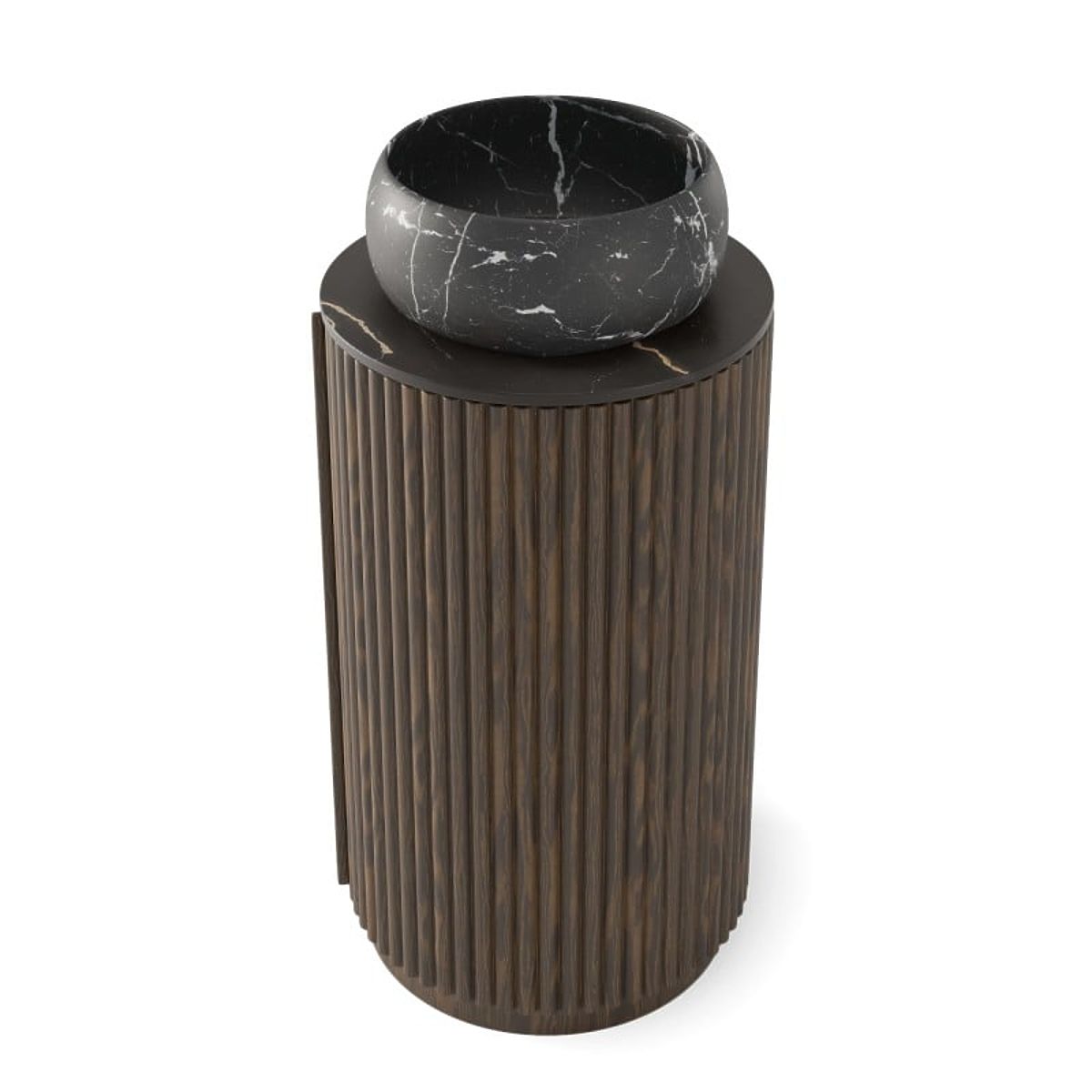 Lukahome.si » Kopalnica in stranišče / Kopalniški kompleti / Set omarice z desko in umivalnikom La promessa 40 cm, rebrasta, zaobljena, temni oreh/črna