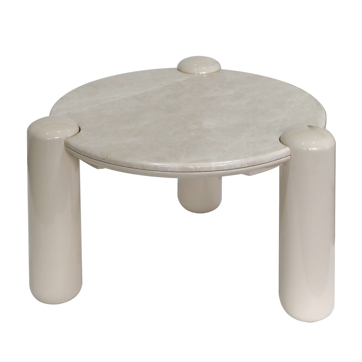 Okrogla marmorna plošča in svetlo bež noge za sodoben videz. .. več