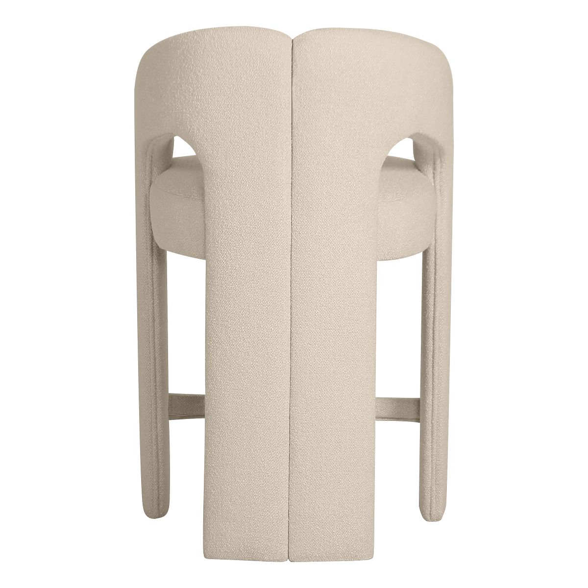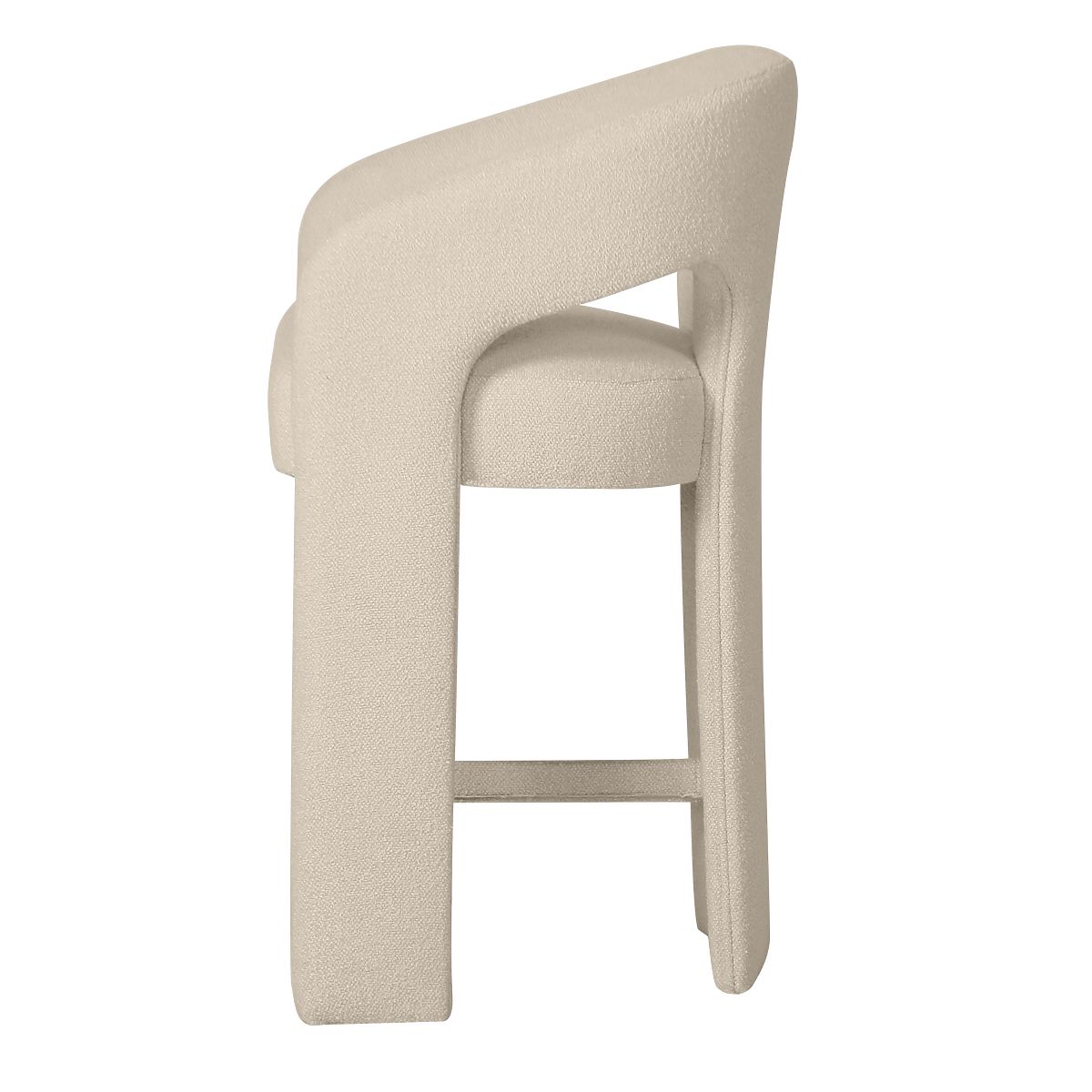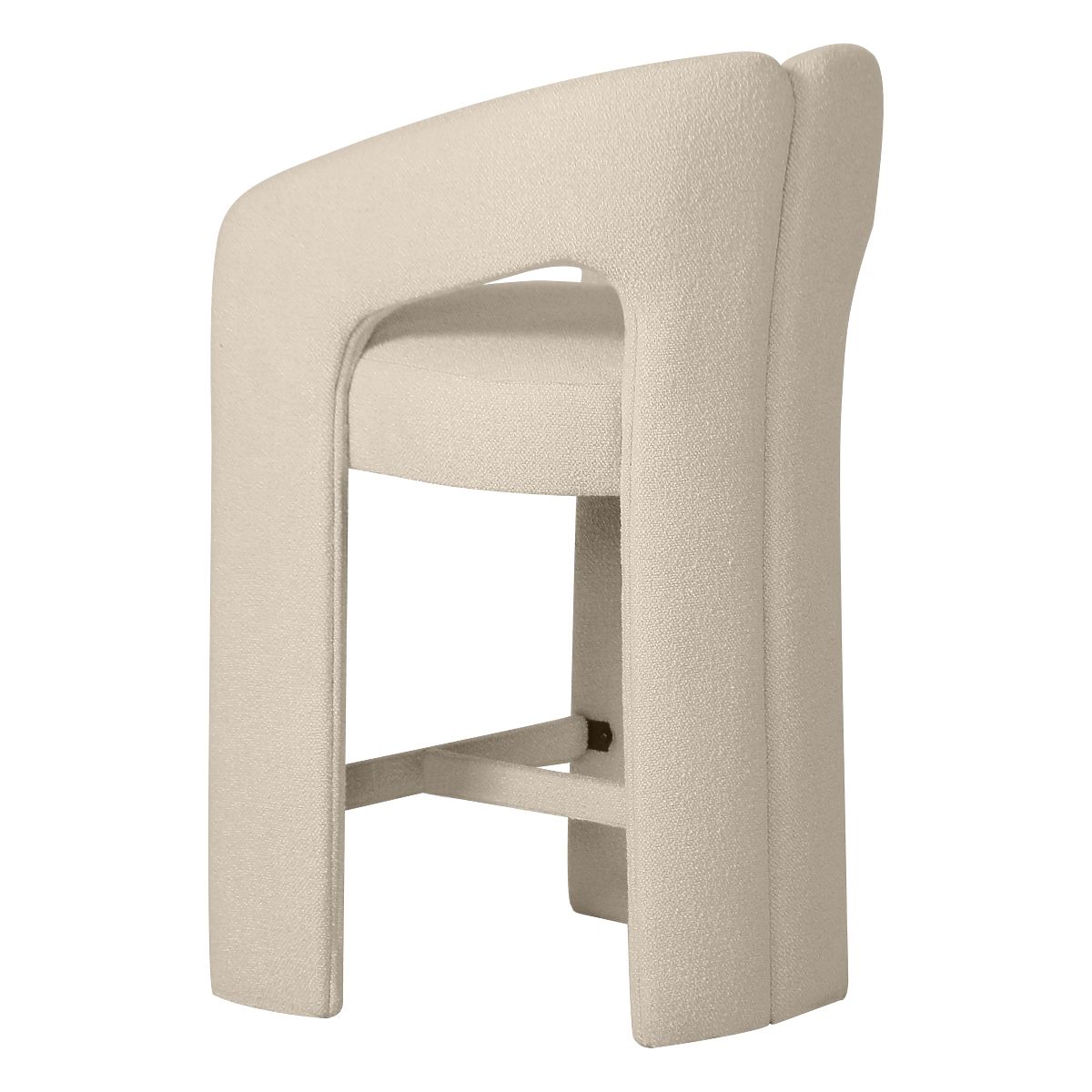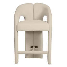 Barski stol Castelo je esenca modernega minimalizma v prijetni izvedbi. Zaobljena oblika, navdihnjena z lokom, mehka bež tkanina in skrbno dodelani detajli tvorijo harmonično celoto, ki vnaša v notranjost stil, mir in izjemen značaj. Njegove zaobljene oblike in nežna barvnost se odlično prilegajo različnim aranžmajem – od elegantne jedilnice do moderne kuhinje, stilne kavarne ali bara. Udoben sedež, udobno naslonjalo in praktični nasloni za roke zagotavljajo, da je vsakodnevna uporaba čisti užitek. Tri oblazinjene noge dajejo pohištvu vizualno lahkotnost in moderen izraz, medtem ko kovinska opora za noge zagotavlja stabilno oporo za noge. Castelo je pohištvo, ki ne le krasi, ampak tudi skrbi za vaše udobje. Izberite ga, če iščete funkcionalno lepoto, ki očara z nežno obliko in vsakodnevnim udobjem.