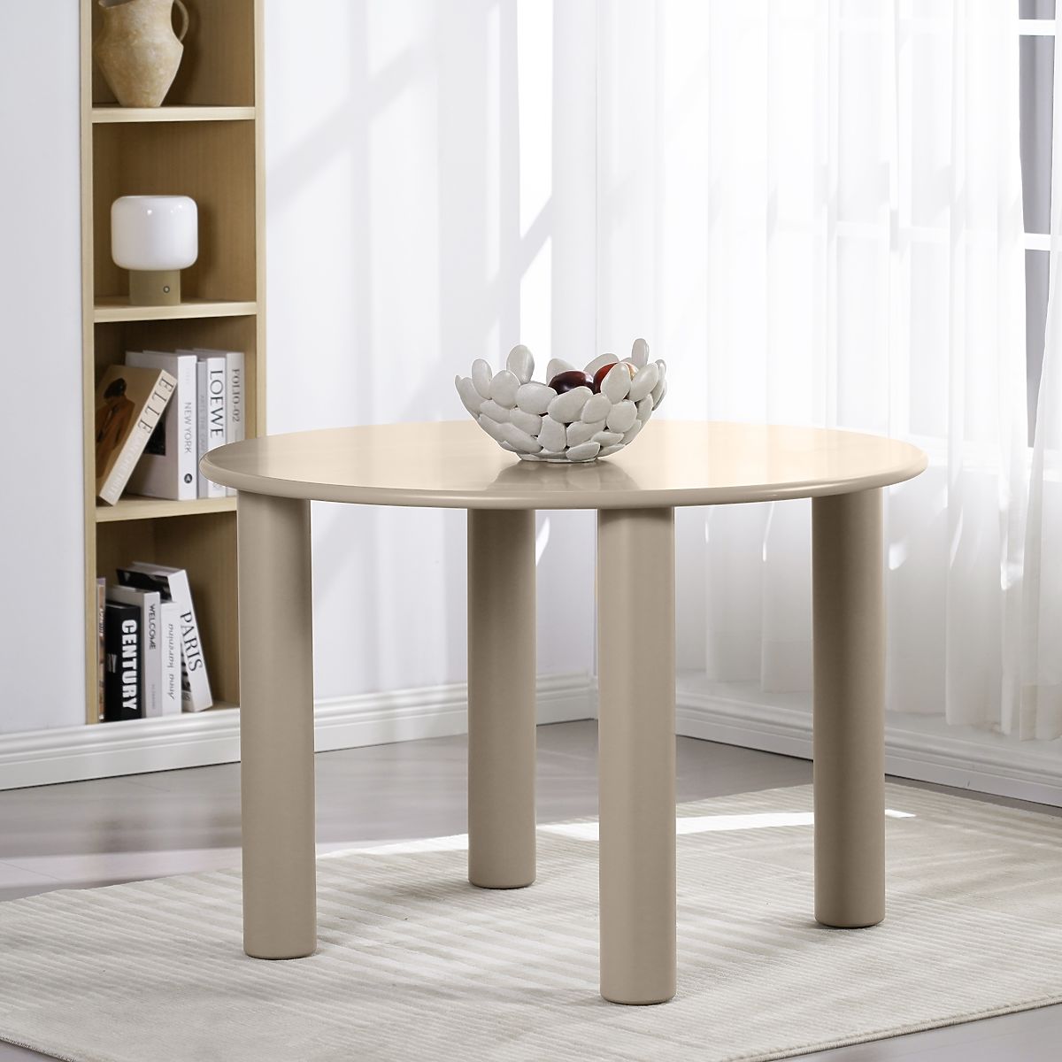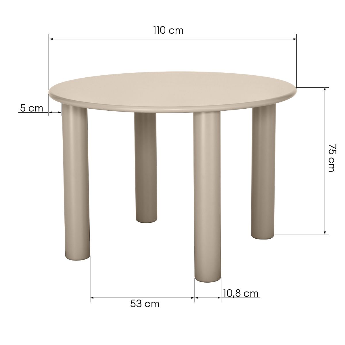 Miza Joki združuje sodobno obliko s funkcionalnostjo in postane osrednja točka vsake jedilnice. Njena okrogla plošča ustvarja prostor, kjer se lahko vsak udobno usede, hkrati pa poudarja minimalistično eleganco mize. Štiri trdne, cilindrične noge niso le trdna osnova mize, temveč tudi nežen detajl, ki ji dodaja značaj in stabilnost. Mat površina v temno bež barvi harmonično sovpada z različnimi aranžmaji ter prinaša v notranjost uravnotežen, sodoben poudarek.